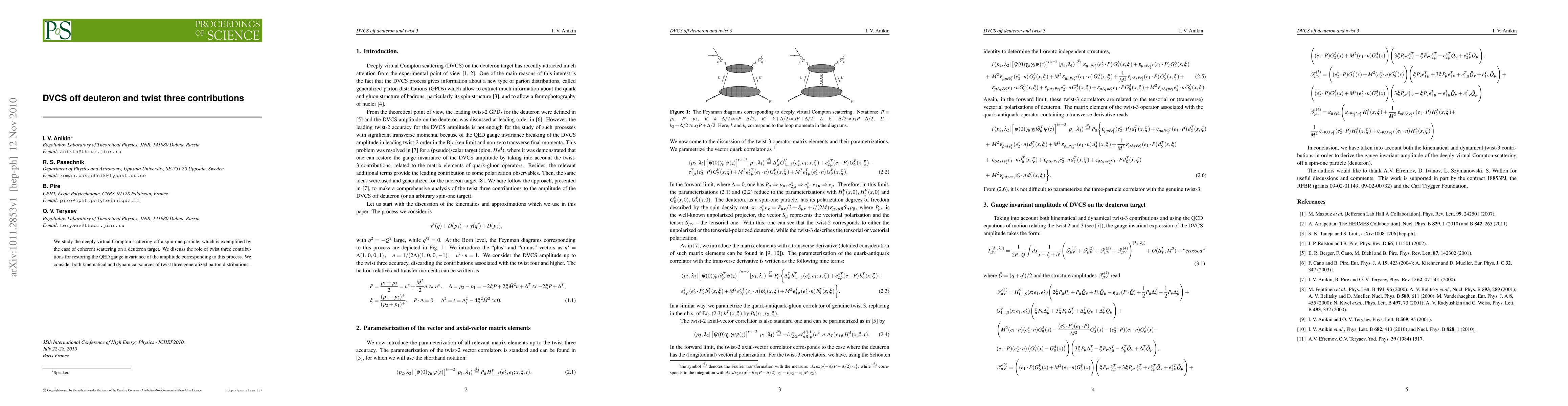 We study the deeply virtual Compton scattering off a spin-one particle, which is exemplified by the case of coherent scattering on a deuteron target. We discuss the role of twist three contributions for restoring the QED gauge invariance of the amplitude corresponding to this process. We consider both kinematical and dynamical sources of twist three generalized parton distributions.