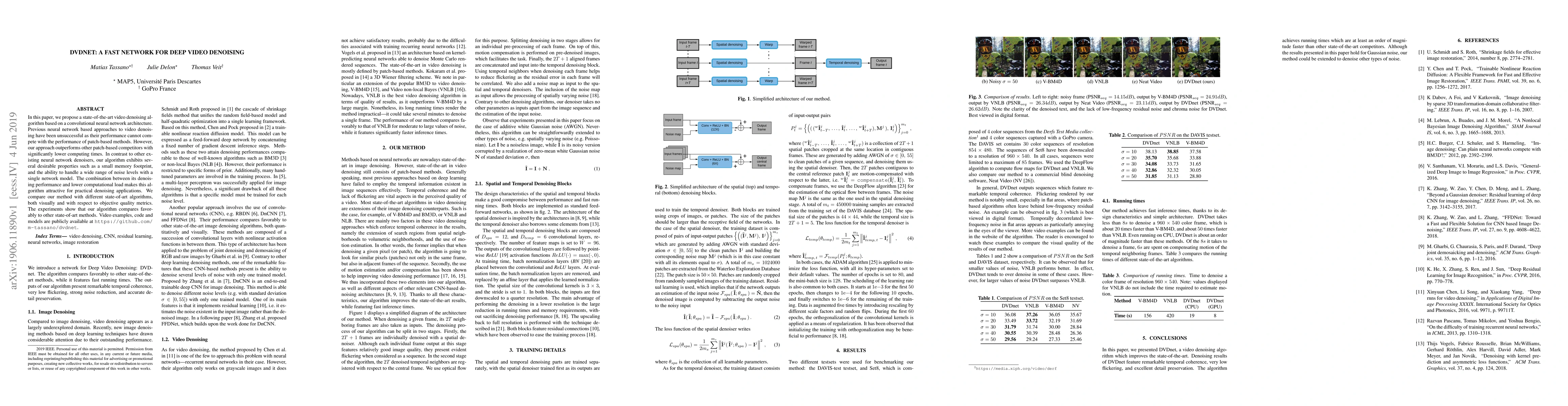 In this paper, we propose a state-of-the-art video denoising algorithm based on a convolutional neural network architecture. Previous neural network based approaches to video denoising have been unsuccessful as their performance cannot compete with the performance of patch-based methods. However, our approach outperforms other patch-based competitors with significantly lower computing times. In contrast to other existing neural network denoisers, our algorithm exhibits several desirable properties such as a small memory footprint, and the ability to handle a wide range of noise levels with a single network model. The combination between its denoising performance and lower computational load makes this algorithm attractive for practical denoising applications. We compare our method with different state-of-art algorithms, both visually and with respect to objective quality metrics. The experiments show that our algorithm compares favorably to other state-of-art methods. Video examples, code and models are publicly available at \url{https://github.com/m-tassano/dvdnet}.
