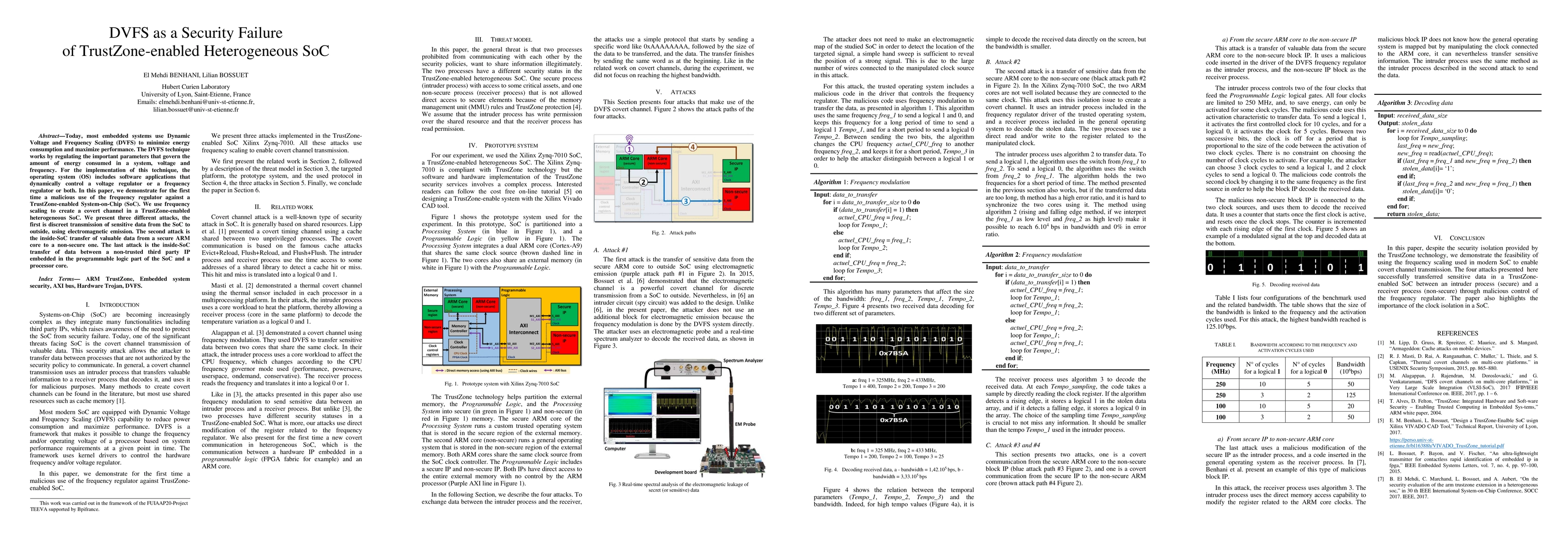 Researchers discover a security vulnerability in TrustZone-enabled SoCs that allow malicious attacks through Dynamic Voltage and Frequency Scaling (DVFS). These attacks can transmit sensitive data wirelessly or within the system, compromising the security of heterogeneous SoCs.