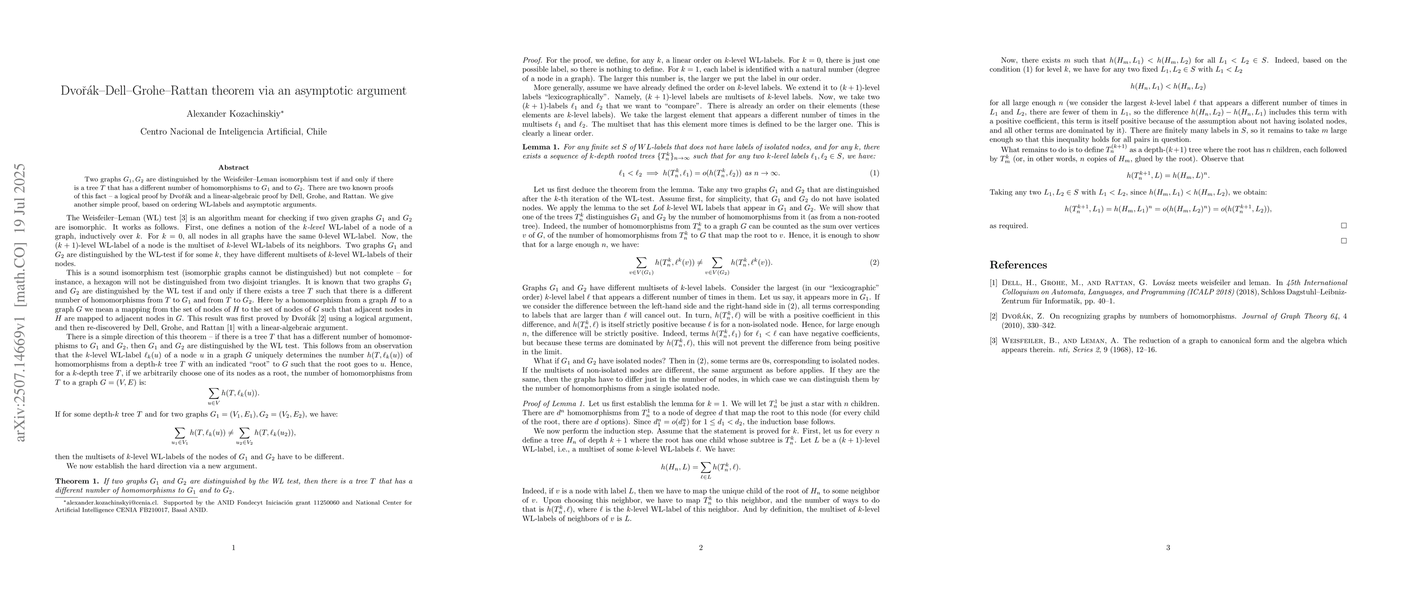 Two graphs $G_1,G_2$ are distinguished by the Weisfeiler--Leman isomorphism test if and only if there is a tree $T$ that has a different number of homomorphisms to $G_1$ and to $G_2$. There are two known proofs of this fact -- a logical proof by Dvorak and a linear-algebraic proof by Dell, Grohe, and Rattan. We give another simple proof, based on ordering WL-labels and asymptotic arguments.