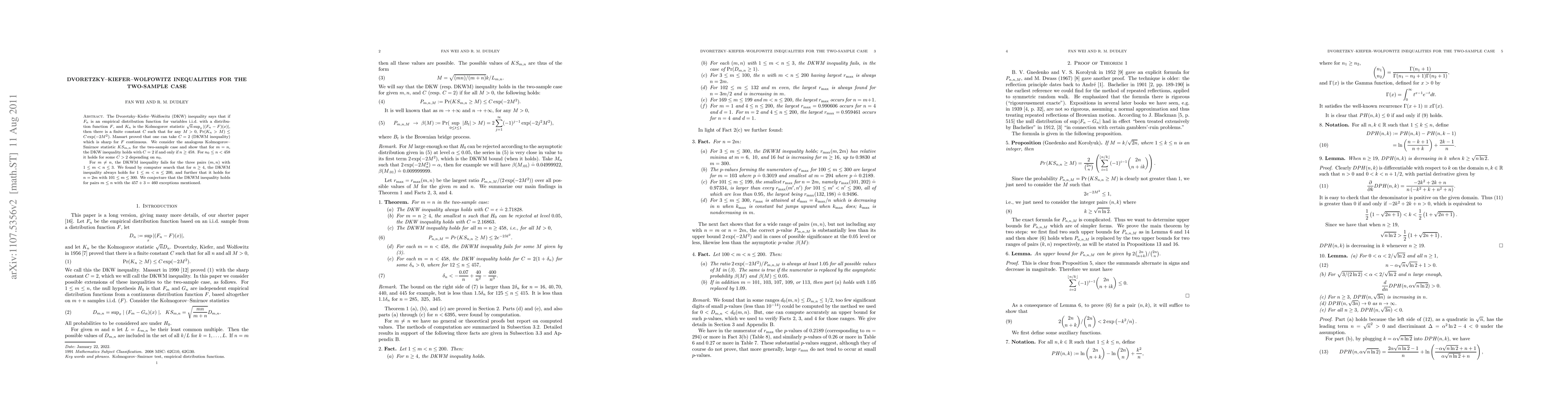 This paper extends the Dvoretzky--Kiefer--Wolfowitz (DKW) inequality to the two-sample case, showing that the DKWM inequality holds with C=2 if and only if the sample sizes are both at least 458. For smaller sample sizes, the inequality holds but with a larger constant C. The authors also found that the inequality holds for certain pairs of sample sizes where one is not strictly larger than the other, and they conjecture that it generally holds except for specific small exceptions.