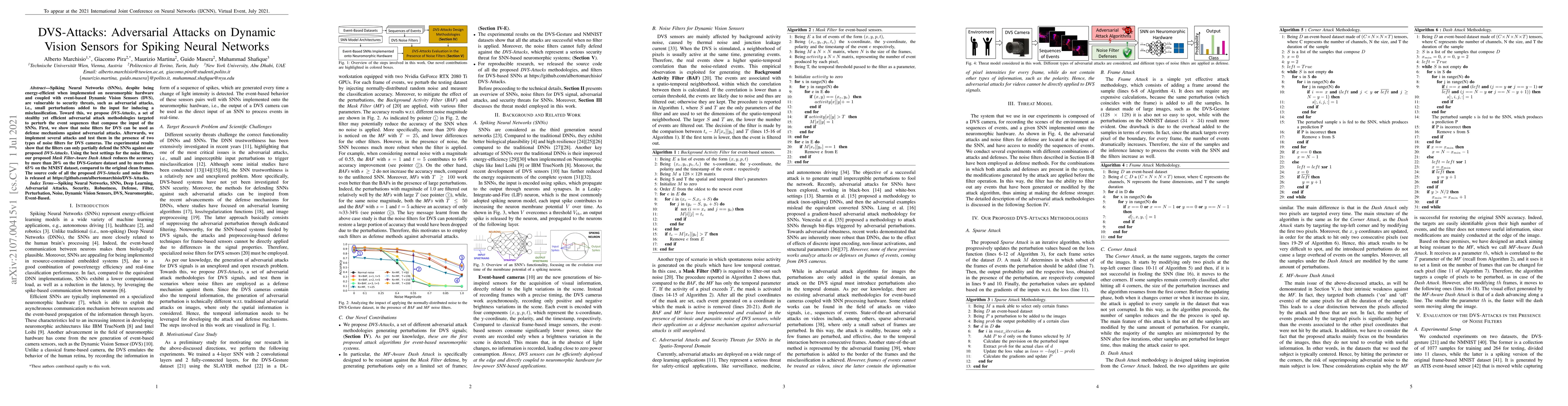 This paper proposes DVS-Attacks, a series of adversarial attack methodologies aimed at perturbing event sequences for Spiking Neural Networks (SNNs) implemented with Dynamic Vision Sensors (DVS). The study reveals that noise filters for DVS can partially defend against these attacks, but the Mask Filter-Aware Dash Attack significantly reduces accuracy on DVS-Gesture and MNIST datasets.