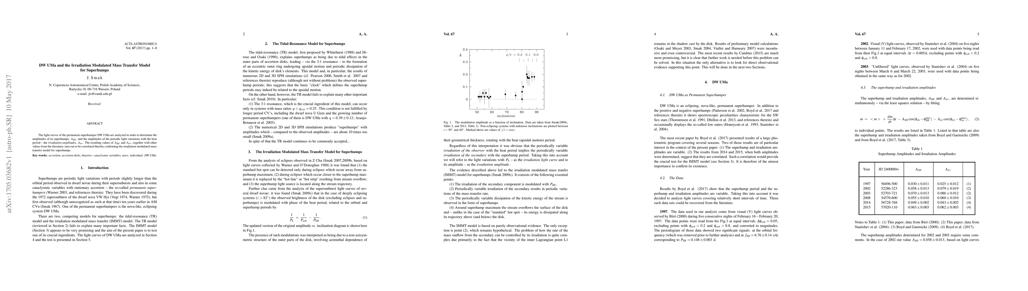 The study presents an analysis of DW UMa's light curves, providing a correlation between superhump and irradiation amplitudes, which supports the IMMT model for superhumps.