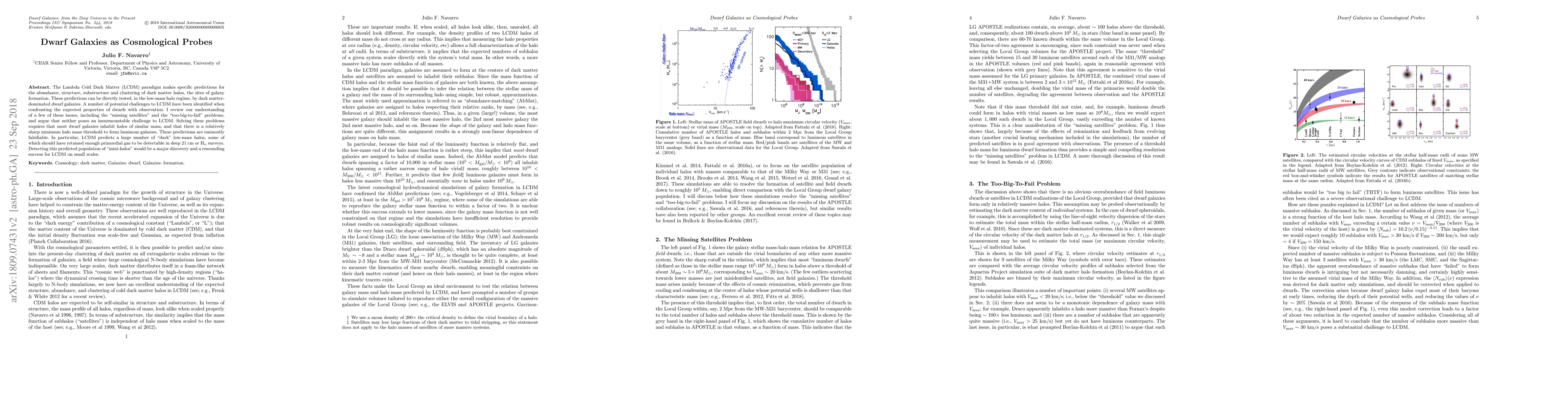 The Lambda Cold Dark Matter (LCDM) paradigm makes specific predictions for the abundance, structure, substructure and clustering of dark matter halos, the sites of galaxy formation. These predictions can be directly tested, in the low-mass halo regime, by dark matter-dominated dwarf galaxies. A number of potential challenges to LCDM have been identified when confronting the expected properties of dwarfs with observation. I review our understanding of a few of these issues, including the `missing satellites' and the `too-big-to-fail' problems, and argue that neither poses an insurmountable challenge to LCDM. Solving these problems requires that most dwarf galaxies inhabit halos of similar mass, and that there is a relatively sharp minimum halo mass threshold to form luminous galaxies. These predictions are eminently falsifiable. In particular, LCDM predicts a large number of `dark' low-mass halos, some of which should have retained enough primordial gas to be detectable in deep 21 cm or H$_\alpha$ surveys. Detecting this predicted population of `mini-halos' would be a major discovery and a resounding success for LCDM on small scales.