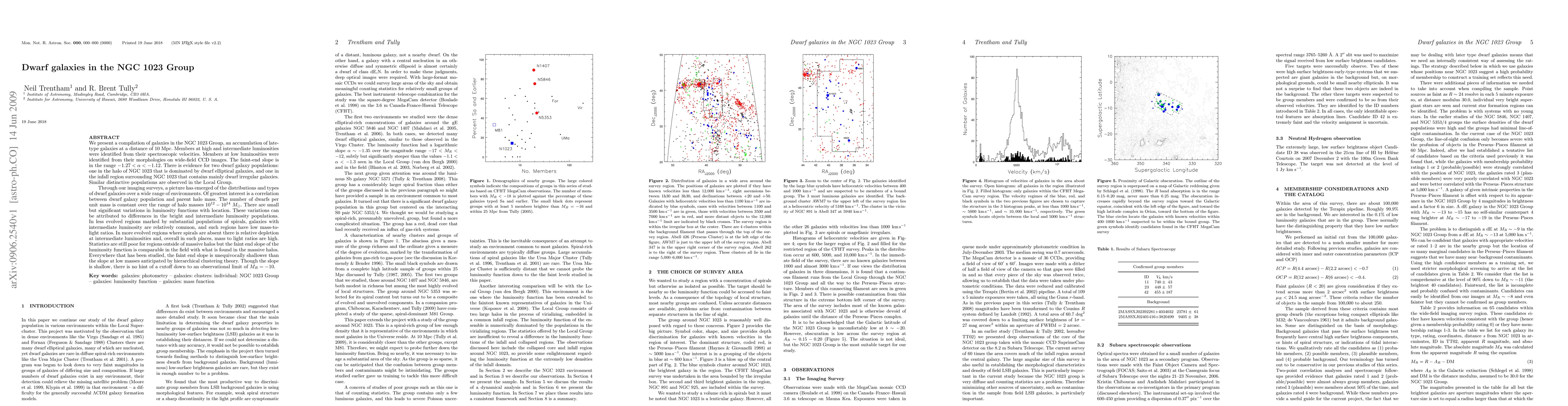 We present a compilation of galaxies in the NGC 1023 Group, an accumulation of late-type galaxies at a distance of 10 Mpc. Members at high and intermediate luminosities were identified from their spectroscopic velocities. Members at low luminosities were identified from their morphologies on wide-field CCD images. The faint-end slope is in the range -1.27 < alpha < -1.12. There is evidence for two dwarf galaxy populations: one in the halo of NGC 1023 that is dominated by dwarf elliptical galaxies, and one in the infall region surrounding NGC 1023 that contains mainly dwarf irregular galaxies. Similar distinctive populations are observed in the Local Group.