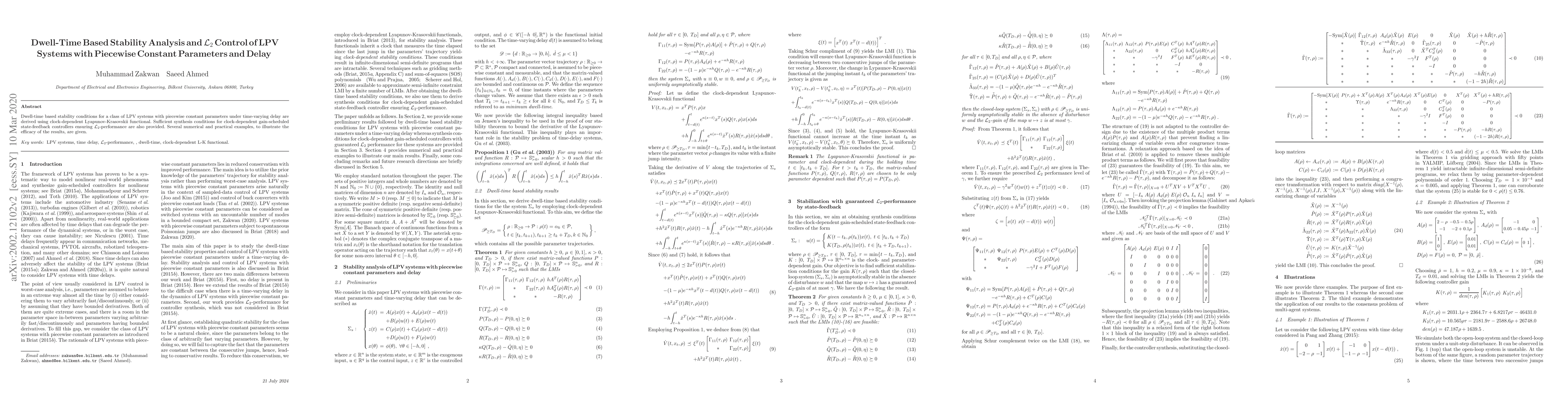 This paper derives dwell-time stability conditions for LPV systems with time-varying delay and piecewise constant parameters, employing a clock-dependent Lyapunov-Krasovskii functional. It also provides synthesis conditions for gain-scheduled state-feedback controllers ensuring L2-performance, supported by numerical examples.