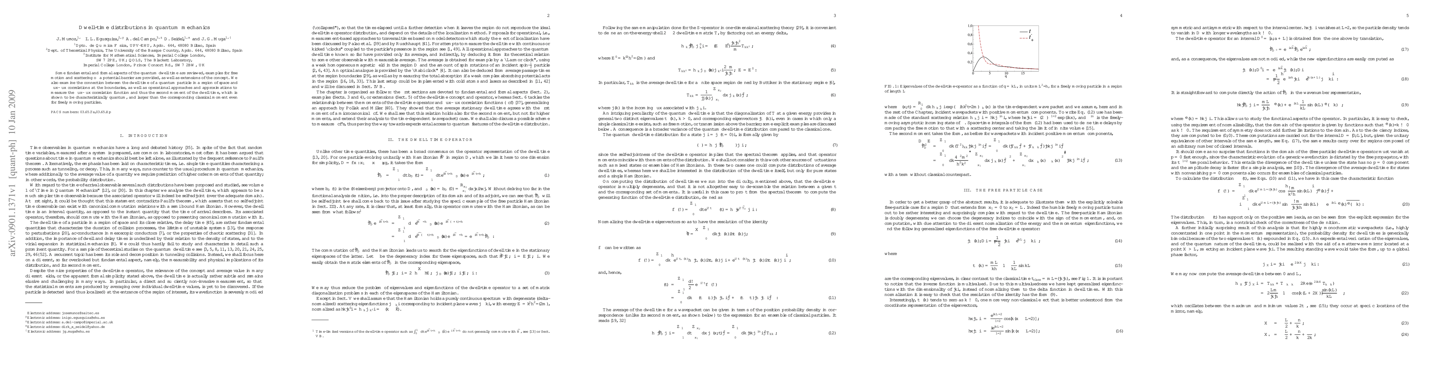 Quantum dwell time distributions show a characteristic quantum behavior larger than classical moments, even for freely moving particles. Researchers explored dwell times in various scenarios, including potential barriers and flux-flux correlations.