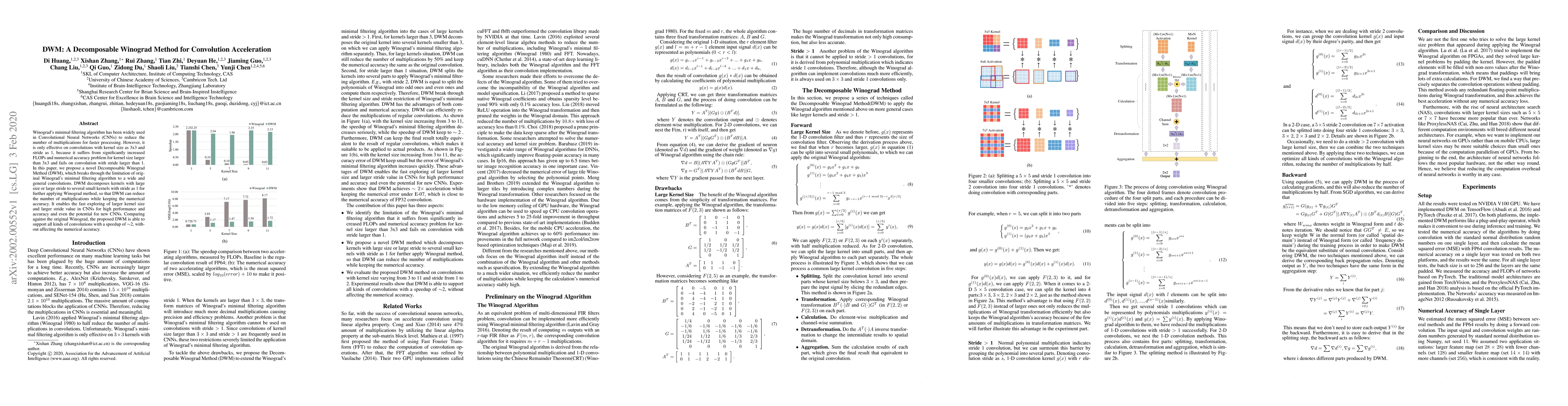 The paper proposes a Decomposable Winograd Method (DWM) to extend Winograd's minimal filtering algorithm for convolutions with larger kernels and strides, achieving a ~2x speedup while maintaining numerical accuracy. DWM decomposes larger kernels into smaller ones, enabling faster processing in Convolutional Neural Networks.