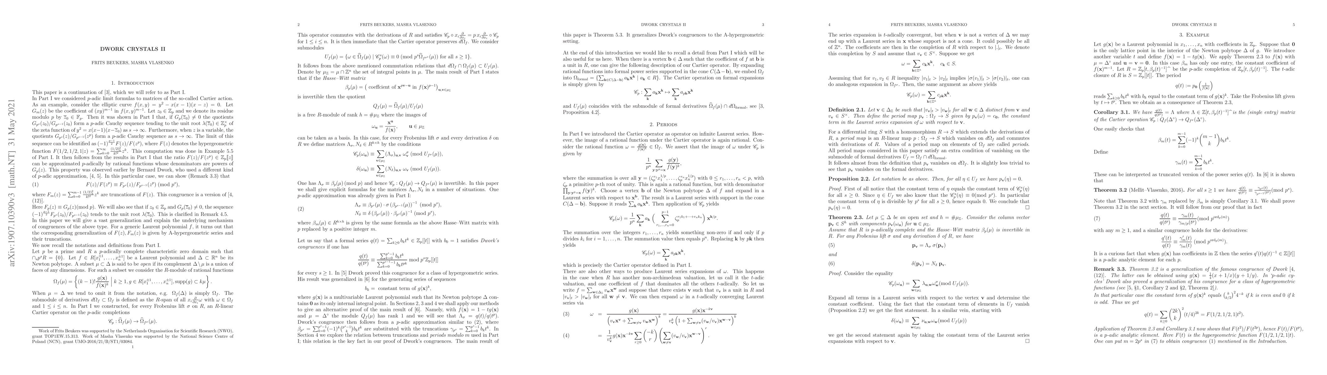Summary: This paper generalizes Bernard Dwork's $p$-adic congruences for truncated period functions, extending the original findings to a broader class of hypergeometric functions. The work aims to deepen the understanding of these mathematical structures.