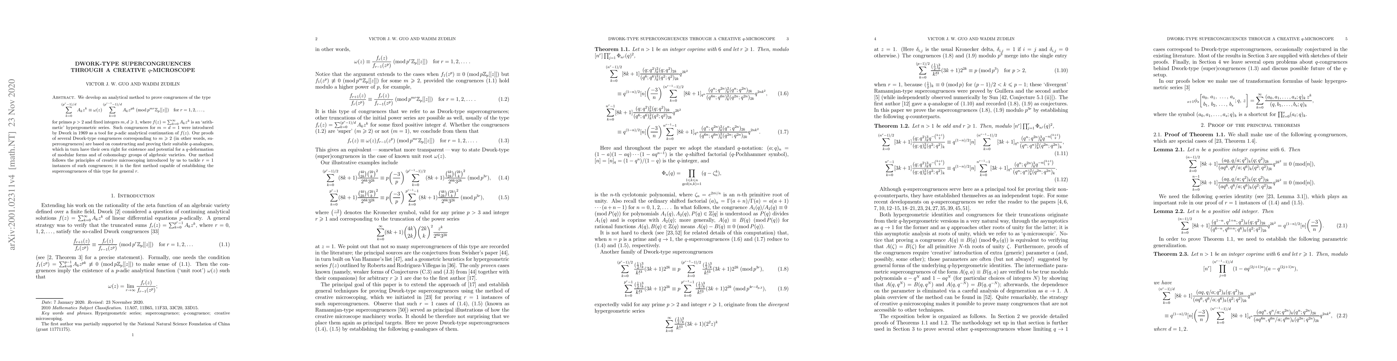 We develop an analytical method to prove congruences of the type $$ \sum_{k=0}^{(p^r-1)/d}A_kz^k \equiv \omega(z)\sum_{k=0}^{(p^{r-1}-1)/d}A_kz^{pk} \pmod{p^{mr}\mathbb Z_p[[z]]} \quad \text{for}\; r=1,2,\dots, $$ for primes $p>2$ and fixed integers $m,d\ge1$, where $f(z)=\sum_{k=0}^\infty A_kz^k$ is an "arithmetic" hypergeometric series. Such congruences for $m=d=1$ were introduced by Dwork in 1969 as a tool for $p$-adic analytical continuation of $f(z)$. Our proofs of several Dwork-type congruences corresponding to $m\ge2$ (in other words, supercongruences) are based on constructing and proving their suitable $q$-analogues, which in turn have their own right for existence and potential for a $q$-deformation of modular forms and of cohomology groups of algebraic varieties. Our method follows the principles of creative microscoping introduced by us to tackle $r=1$ instances of such congruences; it is the first method capable of establishing the supercongruences of this type for general $r$.
