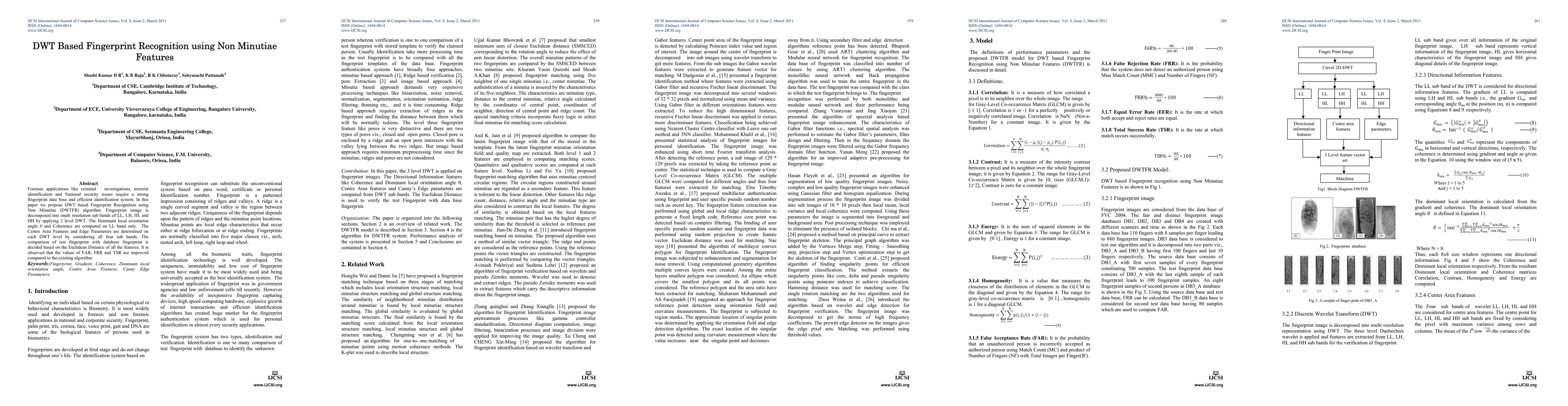 A new fingerprint recognition algorithm using DWT-based features improves FAR, FRR, and TSR values compared to existing methods.