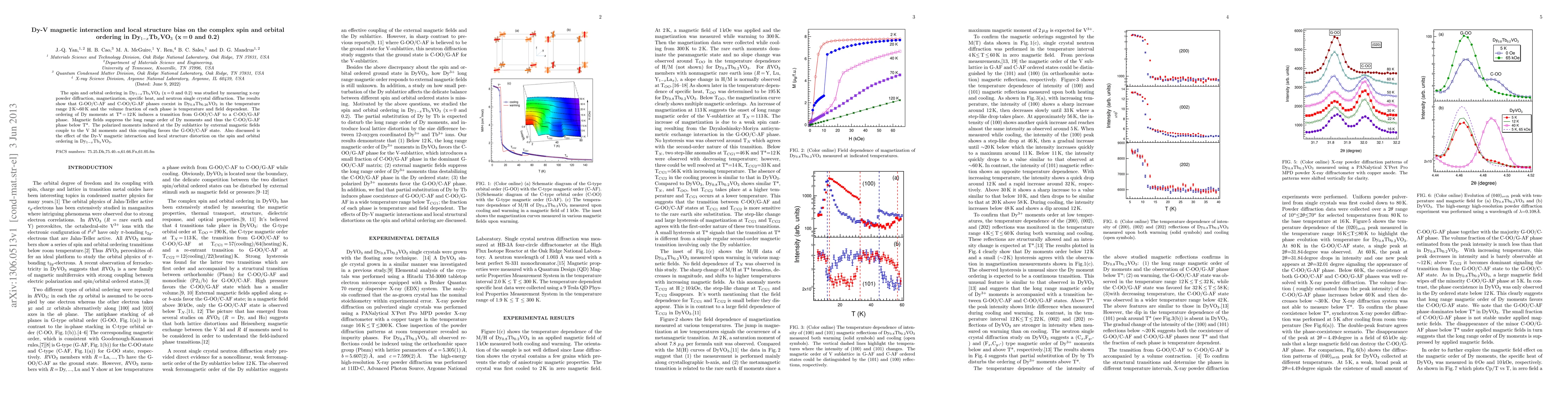 Researchers studied Dy$_{1-x}$Tb$_{x}$VO$_3$ to understand how magnetic interaction and local structure bias affect spin and orbital ordering in a complex material, revealing temperature- and field-dependent coexistence of two phases.