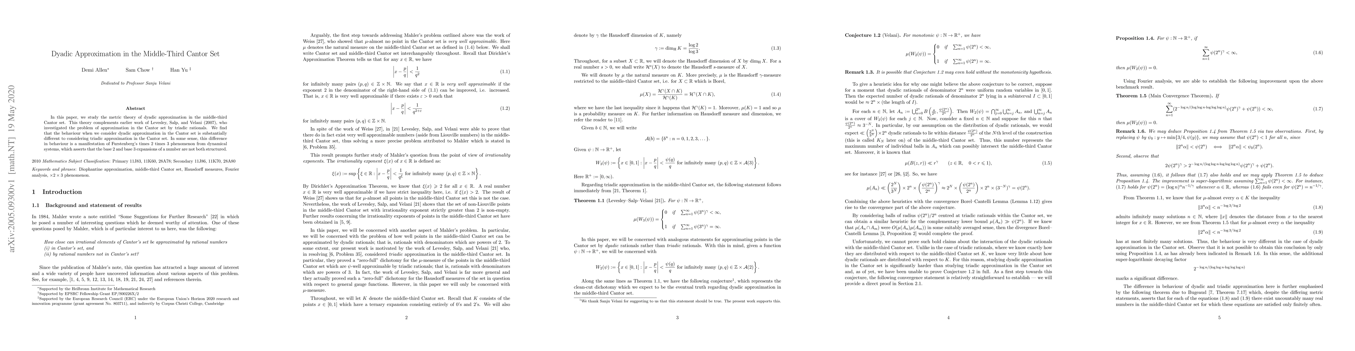 This paper explores the metric theory of dyadic approximation within the middle-third Cantor set, revealing significant differences compared to triadic approximation. It connects these differences to Furstenberg's times 2 times 3 phenomenon, highlighting the distinct structures of base 2 and base 3 expansions.