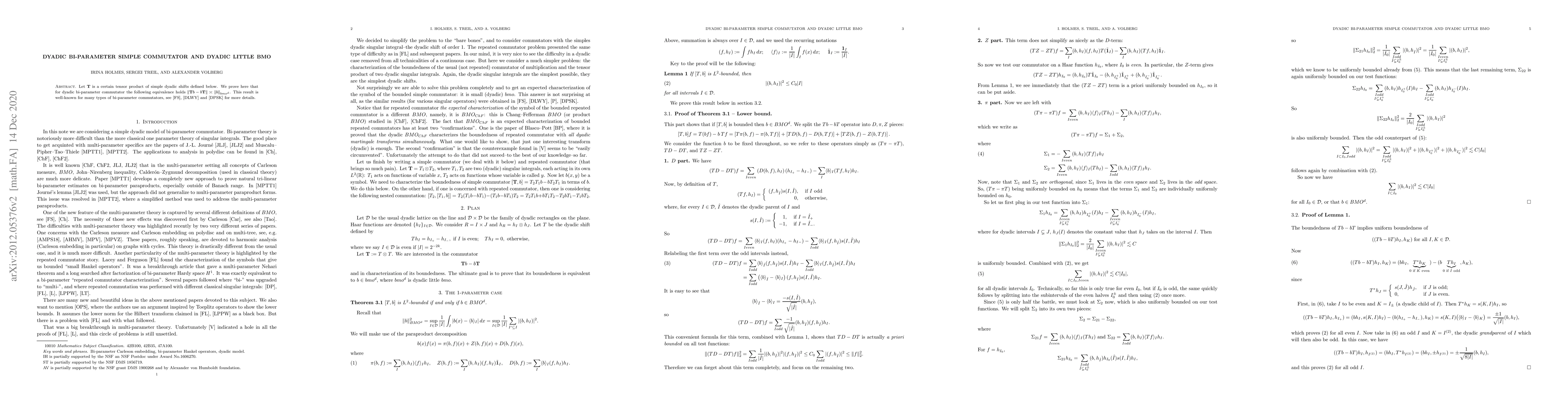 Researchers prove an equivalence between a bi-parameter commutator's norm and a function's bmo^d norm, with implications for understanding bi-parameter operators in harmonic analysis.