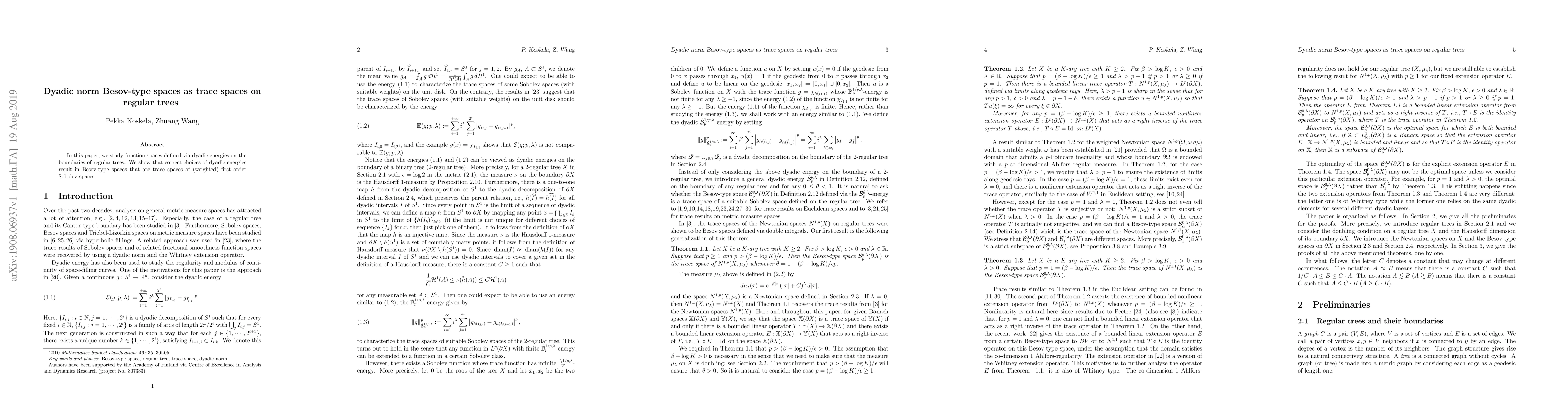 This paper investigates function spaces based on dyadic energies on regular tree boundaries, demonstrating that appropriate dyadic energy selections yield Besov-type spaces that serve as trace spaces for weighted first-order Sobolev spaces.