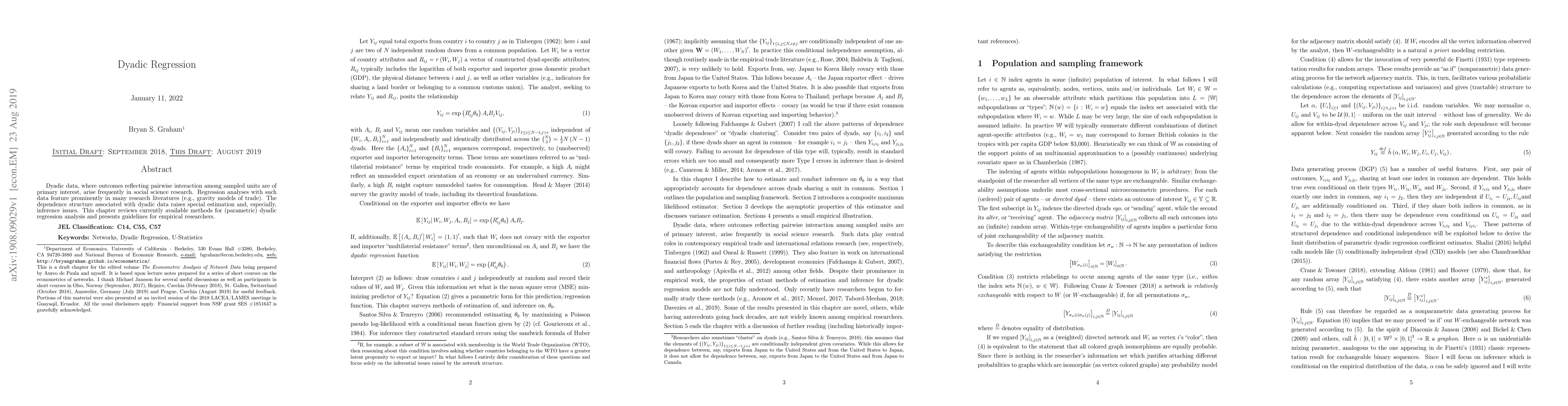 This paper reviews methods for analyzing dyadic data, focusing on regression techniques that address the unique dependence structure inherent in pairwise interaction data, and provides guidance for researchers working with such data.