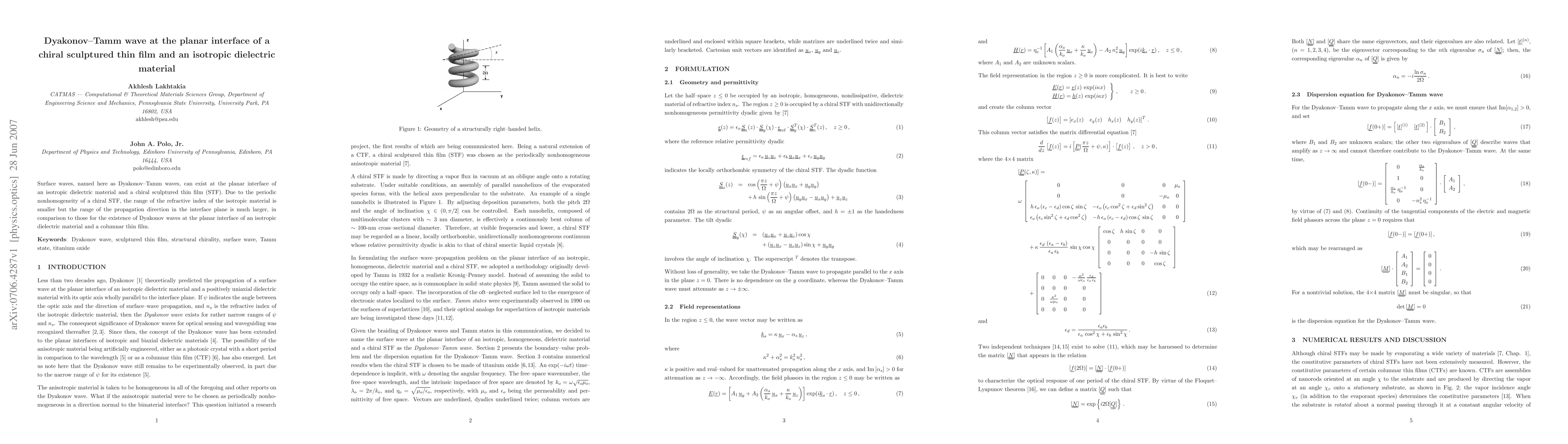 This research explores Dyakonov-Tamm waves at the interface between a chiral sculptured thin film and an isotropic dielectric material, showing that the periodic nonhomogeneity of the chiral film expands the propagation direction range compared to traditional columnar thin films.