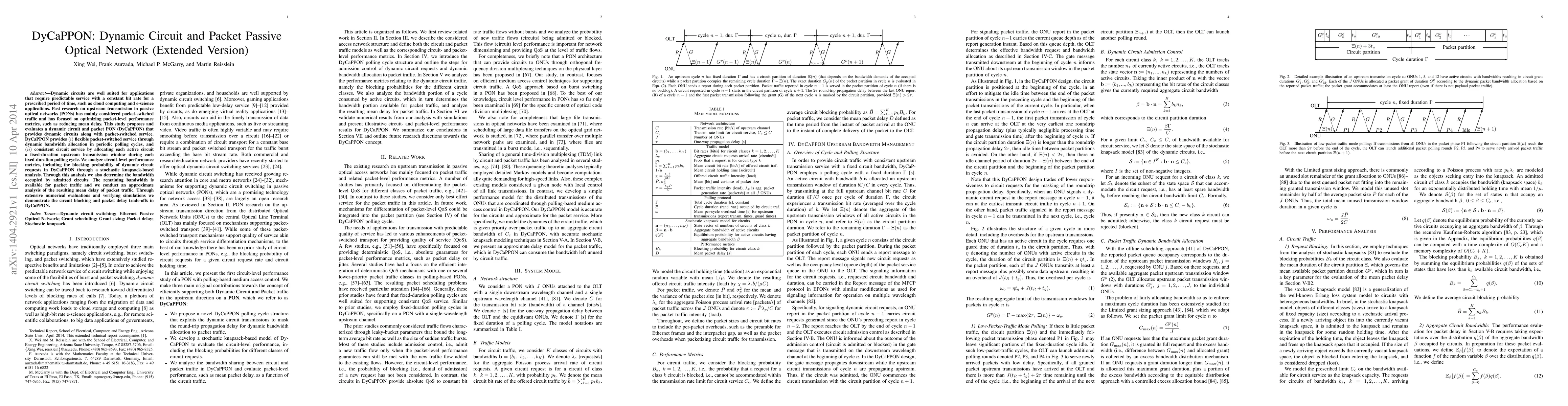 This paper proposes DyCaPPON, a dynamic circuit and packet PON that integrates dynamic circuits with packet-switched service, optimizing both circuit-level and packet-level performance metrics. It evaluates the system's blocking probability and mean delay through stochastic analysis and simulations, demonstrating the trade-offs between circuit and packet services.