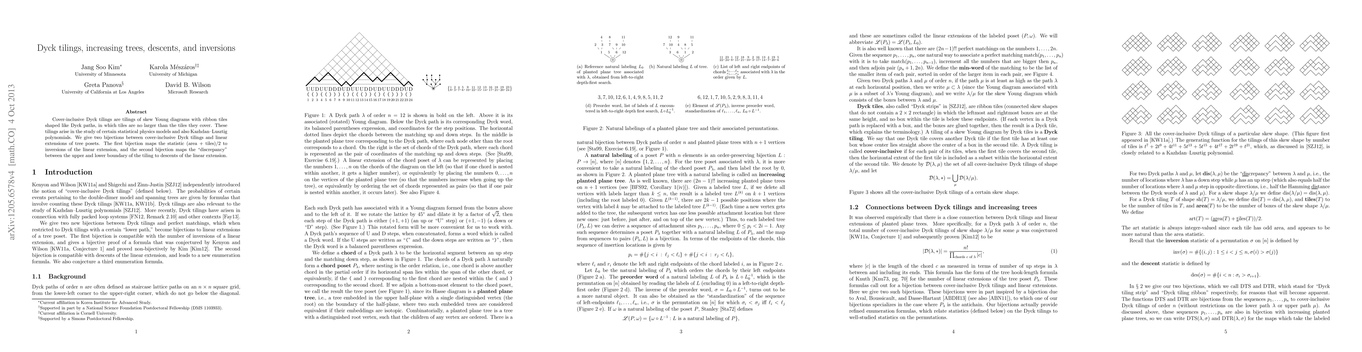 Researchers have found two connections between cover-inclusive Dyck tilings and linear extensions of tree posets, mapping tiling statistics to inversions and discrepancies to descents in these mathematical structures.