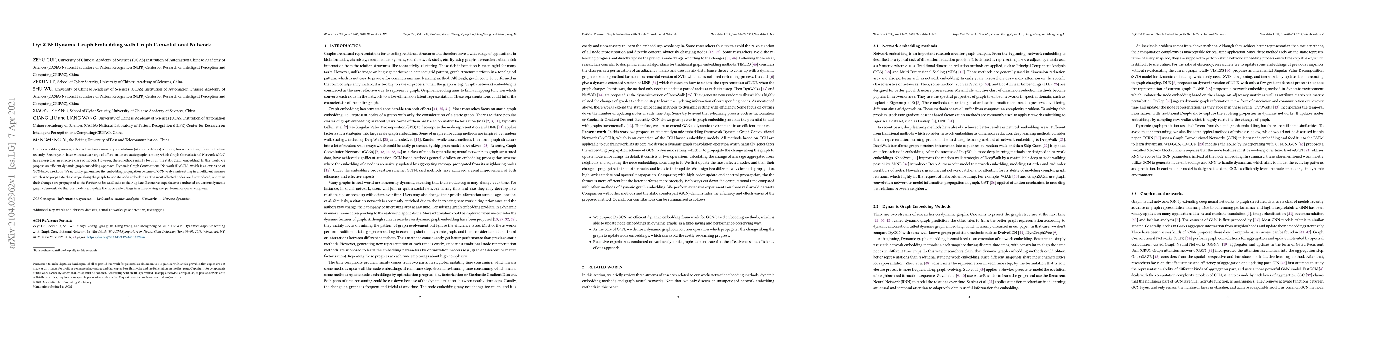 The paper proposes DyGCN, a dynamic graph embedding approach that extends Graph Convolutional Networks (GCN) to efficiently update node embeddings in dynamic graphs. This method propagates changes from the most affected nodes to others, demonstrating time-saving and performance-preserving updates in experiments.
