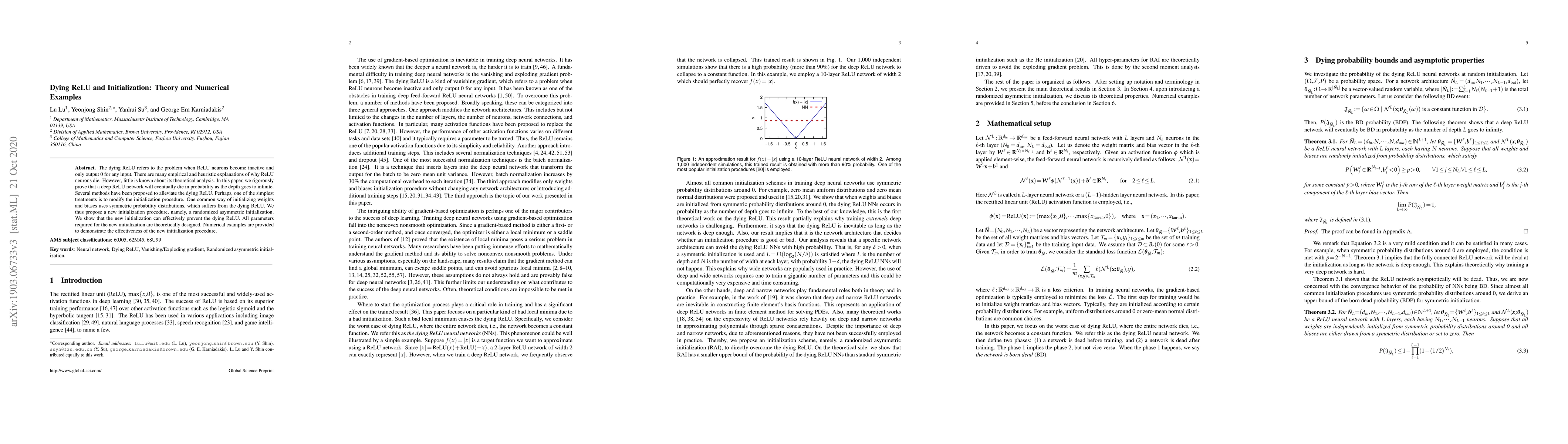This paper rigorously proves that deep ReLU networks tend to die in probability as depth increases and proposes a new randomized asymmetric initialization method to prevent this issue. Numerical examples validate the effectiveness of the new initialization technique.