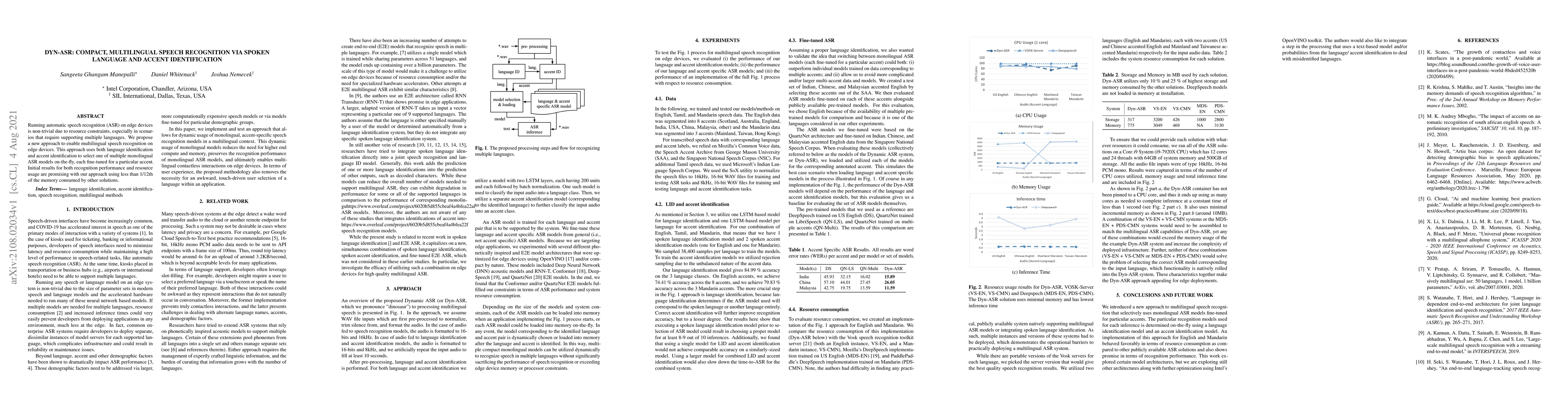 The paper proposes a compact, multilingual automatic speech recognition (ASR) method for edge devices that leverages language and accent identification to dynamically select the most appropriate monolingual ASR model, achieving promising results in both recognition performance and significantly reduced memory usage.