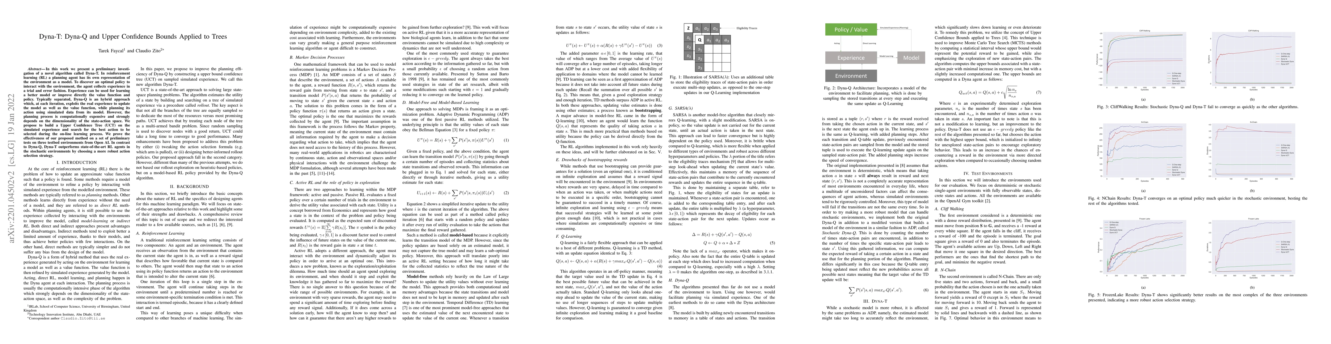 Dyna-T combines Dyna-Q with Upper Confidence Bounds applied to trees to enhance reinforcement learning planning efficiency. Preliminary tests show Dyna-T outperforms existing RL agents in stochastic environments by using a more robust action selection strategy.