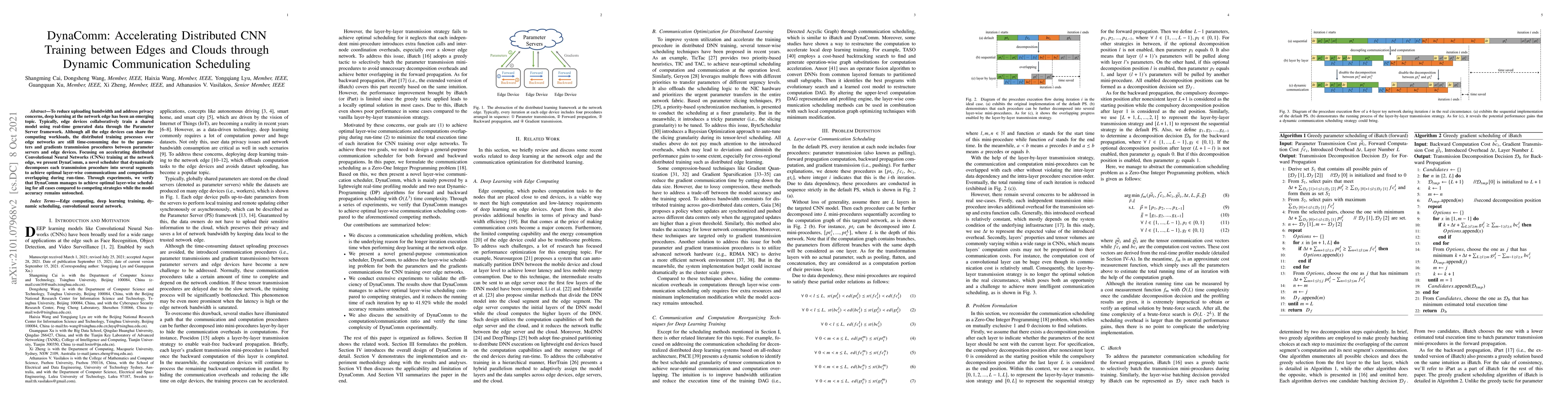 DynaComm accelerates distributed CNN training at network edges by dynamically decomposing transmission procedures into segments for optimal layer-wise communication and computation overlap.