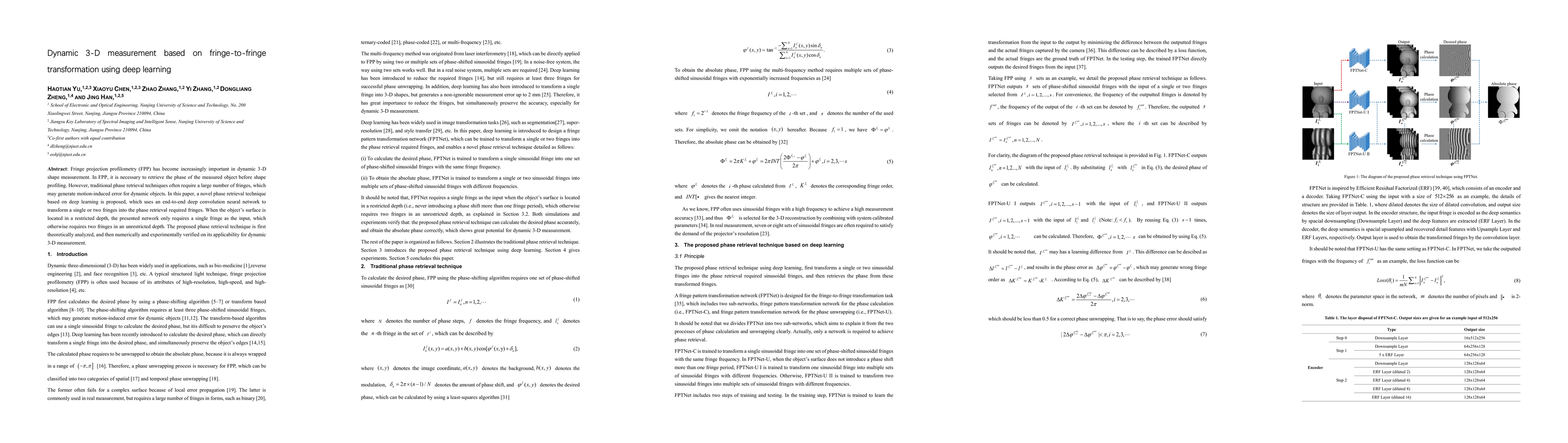 This paper proposes a novel deep learning-based phase retrieval technique for dynamic 3-D shape measurement using fringe projection profilometry. It utilizes a deep convolutional neural network to transform a single or two fringes into the required phase retrieval fringes, significantly reducing motion-induced errors for dynamic objects.