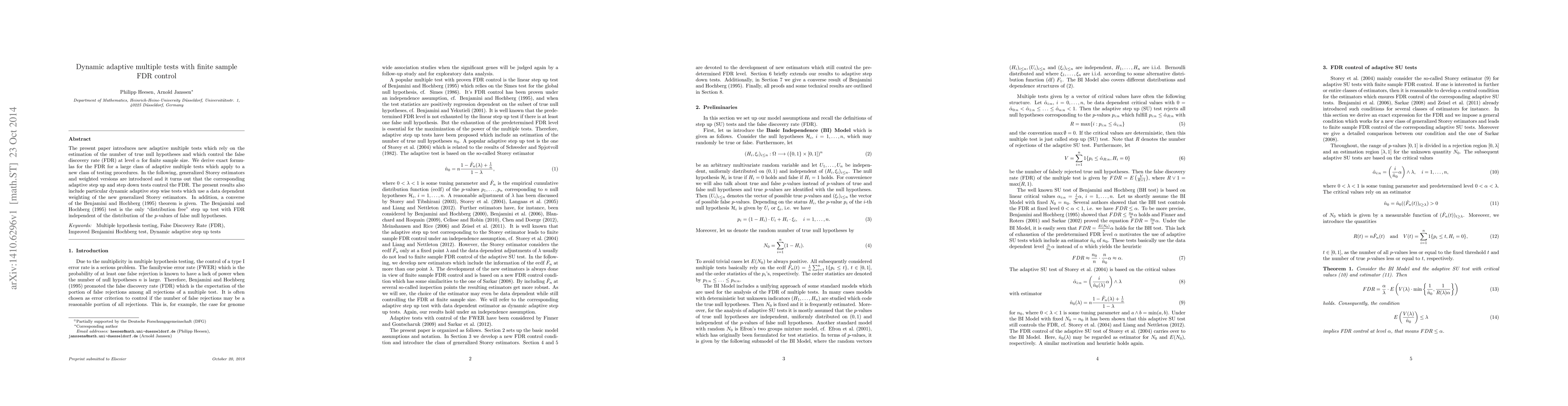 This paper proposes adaptive multiple testing methods that estimate the number of true null hypotheses to control the false discovery rate (FDR) at a specified level for finite sample sizes. It introduces generalized Storey estimators and dynamic adaptive stepwise tests, and provides a converse to the Benjamini Hochberg theorem.