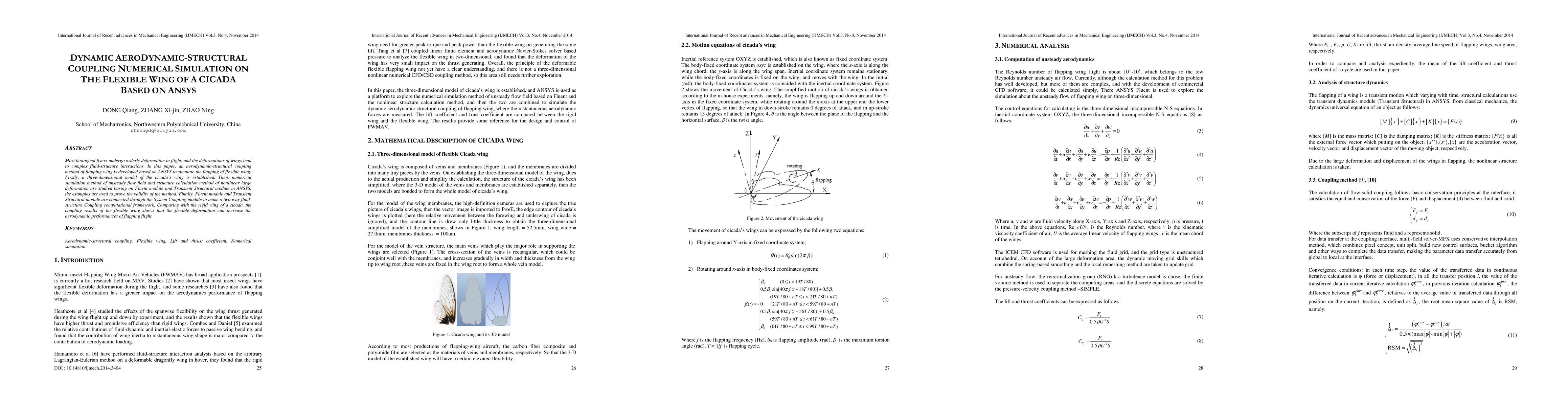 Researchers developed a numerical simulation method to study the aerodynamic-structural coupling of a cicada's flexible wing, finding that its deformation increases flight performance. The study provides new insights into the complex fluid-structure interactions involved in flapping wing flight.