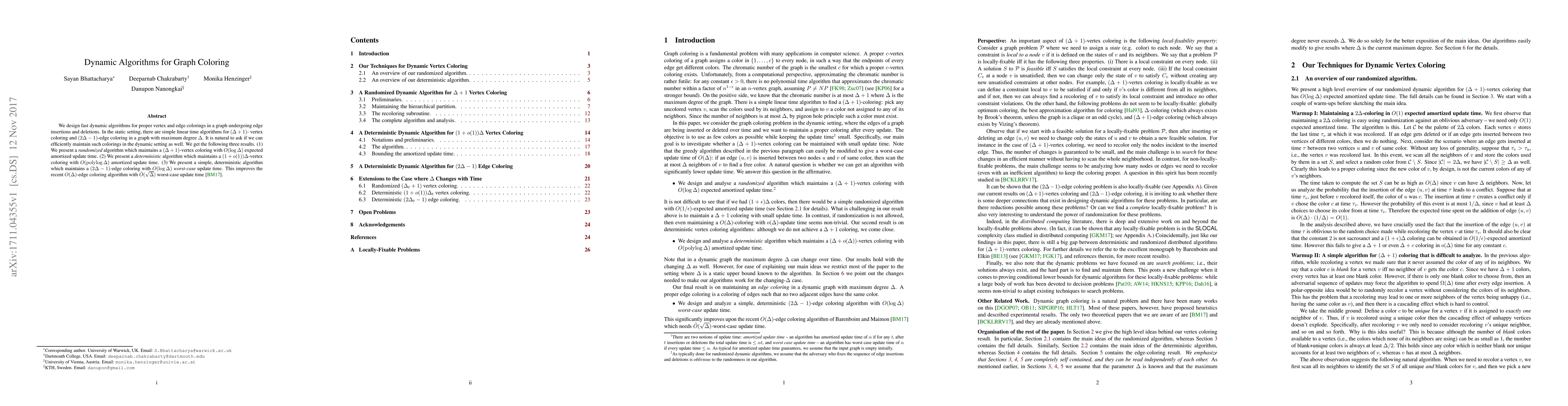 These results contribute to the field of dynamic graph algorithms, providing efficient methods to maintain vertex and edge colorings under dynamic changes, which is crucial for various applications in distributed computing, network optimization, and scheduling problems.