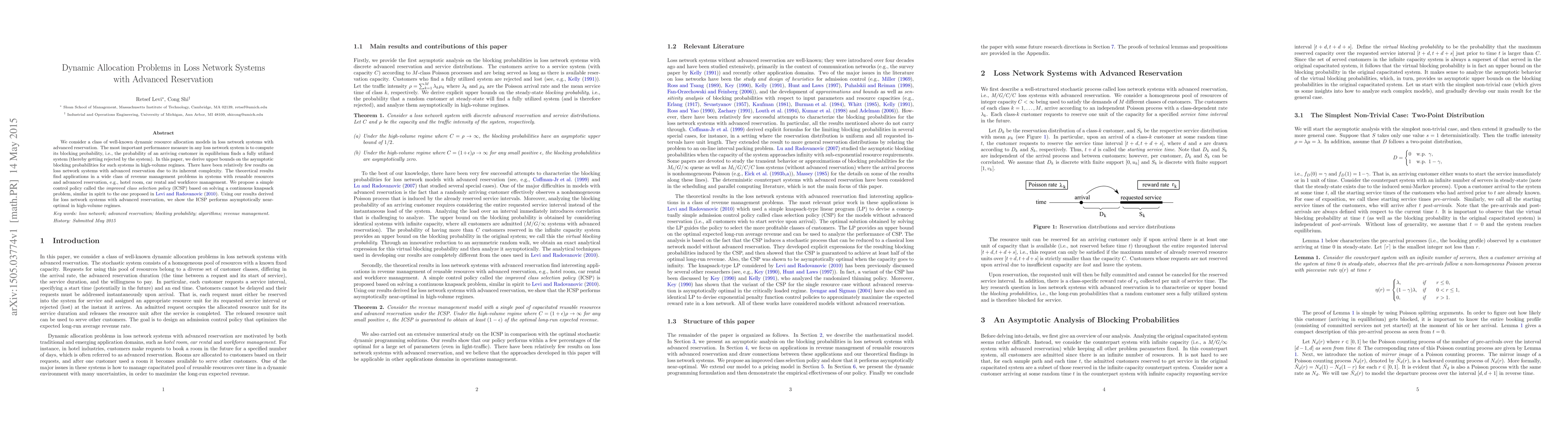 This paper derives upper bounds on the asymptotic blocking probabilities for dynamic resource allocation models in loss network systems with advanced reservation, proposing an improved class selection policy (ICSP) that performs near-optimally in high-volume regimes. The results have applications in revenue management for systems like hotel room, car rental, and workforce management.