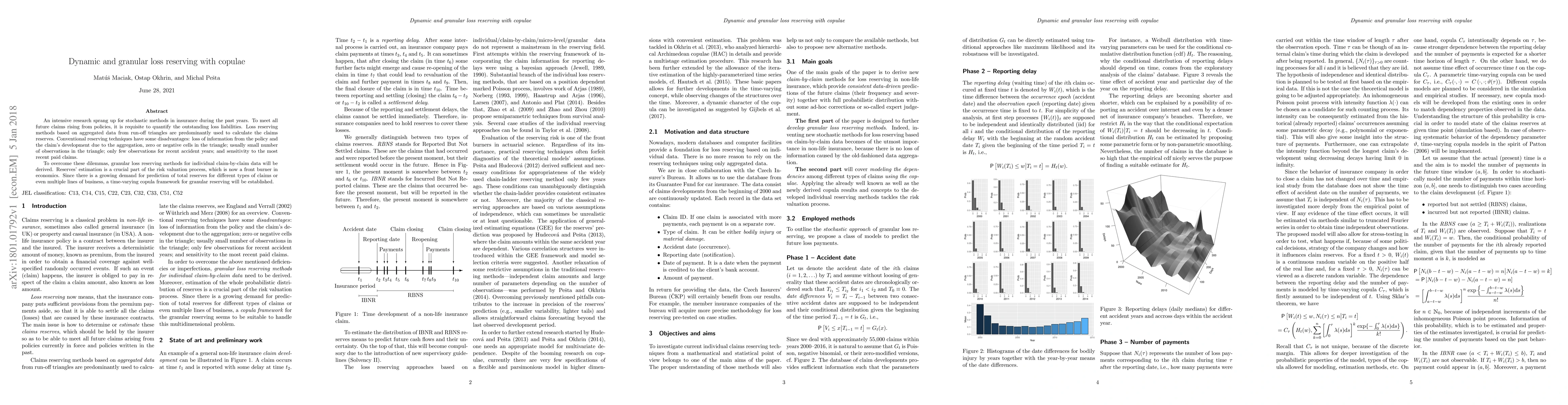An intensive research sprang up for stochastic methods in insurance during the past years. To meet all future claims rising from policies, it is requisite to quantify the outstanding loss liabilities. Loss reserving methods based on aggregated data from run-off triangles are predominantly used to calculate the claims reserves. Conventional reserving techniques have some disadvantages: loss of information from the policy and the claim's development due to the aggregation, zero or negative cells in the triangle; usually small number of observations in the triangle; only few observations for recent accident years; and sensitivity to the most recent paid claims. To overcome these dilemmas, granular loss reserving methods for individual claim-by-claim data will be derived. Reserves' estimation is a crucial part of the risk valuation process, which is now a front burner in economics. Since there is a growing demand for prediction of total reserves for different types of claims or even multiple lines of business, a time-varying copula framework for granular reserving will be established.