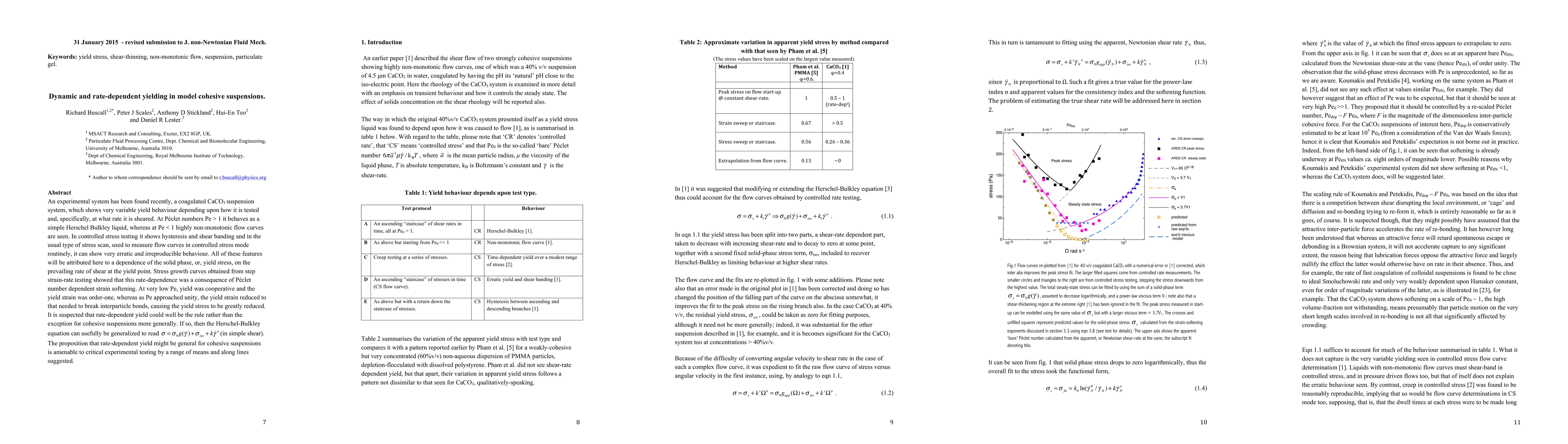 This paper investigates the dynamic and rate-dependent yielding behavior in a coagulated CaCO3 suspension, revealing complex flow curves and hysteresis linked to the rate of shear. The findings suggest that the yield stress is highly dependent on the shear rate, with implications for the general behavior of cohesive suspensions.