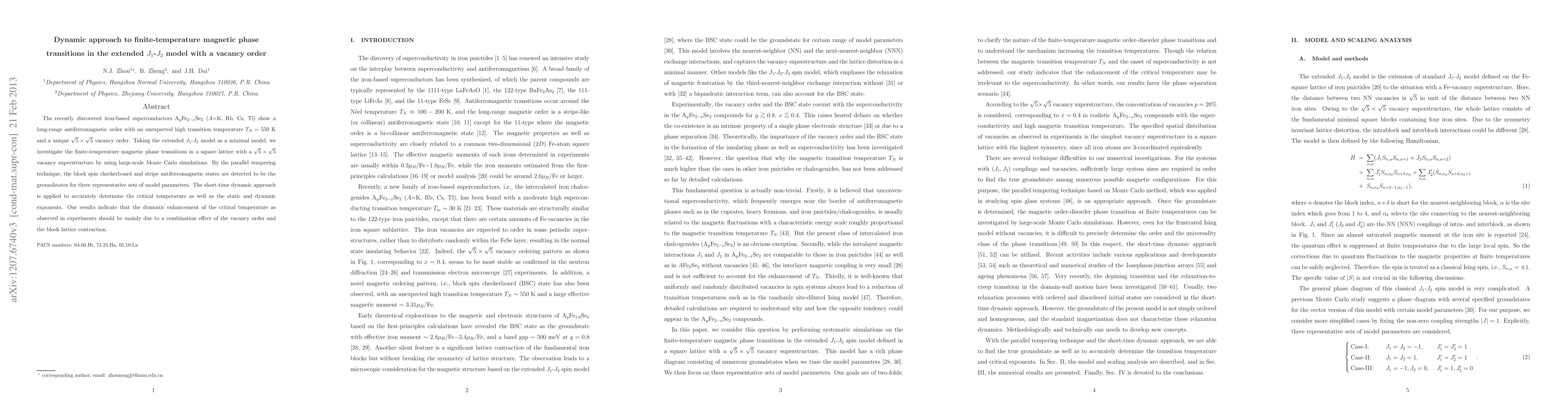 The recently discovered iron-based superconductors A$_{y}$Fe$_{2-x}$Se$_{2}$ ($A$=K, Rb, Cs, Tl) show a long-range antiferromagnetic order with an unexpected high transition temperature $T_N \sim 550$ K and a unique $\sqrt{5} \times \sqrt{5}$ vacancy order. Taking the extended $J_1$-$J_2$ model as a minimal model, we investigate the finite-temperature magnetic phase transitions in a square lattice with a $\sqrt{5} \times \sqrt{5}$ vacancy superstructure by using large-scale Monte Carlo simulations. By the parallel tempering technique, the block spin checkerboard and stripe antiferromagnetic states are detected to be the groundstates for three representative sets of model parameters. The short-time dynamic approach is applied to accurately determine the critical temperature as well as the static and dynamic exponents. Our results indicate that the dramatic enhancement of the critical temperature as observed in experiments should be mainly due to a combination effect of the vacancy order and the block lattice contraction.
