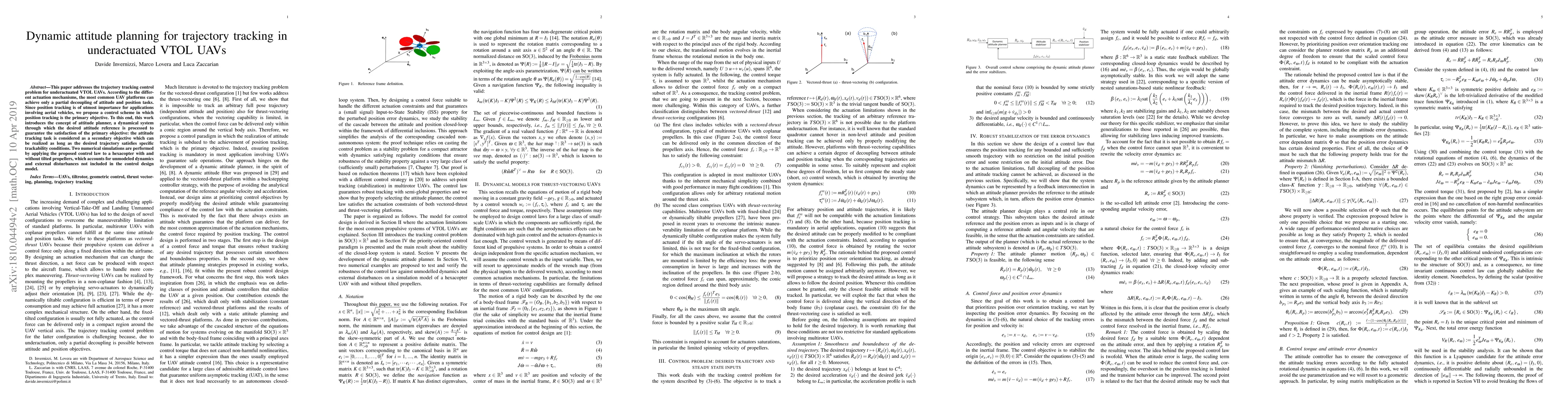 This paper proposes a control scheme for trajectory tracking in underactuated VTOL UAVs, prioritizing position tracking over attitude. It introduces an attitude planner to ensure attitude tracking as a secondary objective under specific trackability conditions, validated through simulations on a hexacopter.