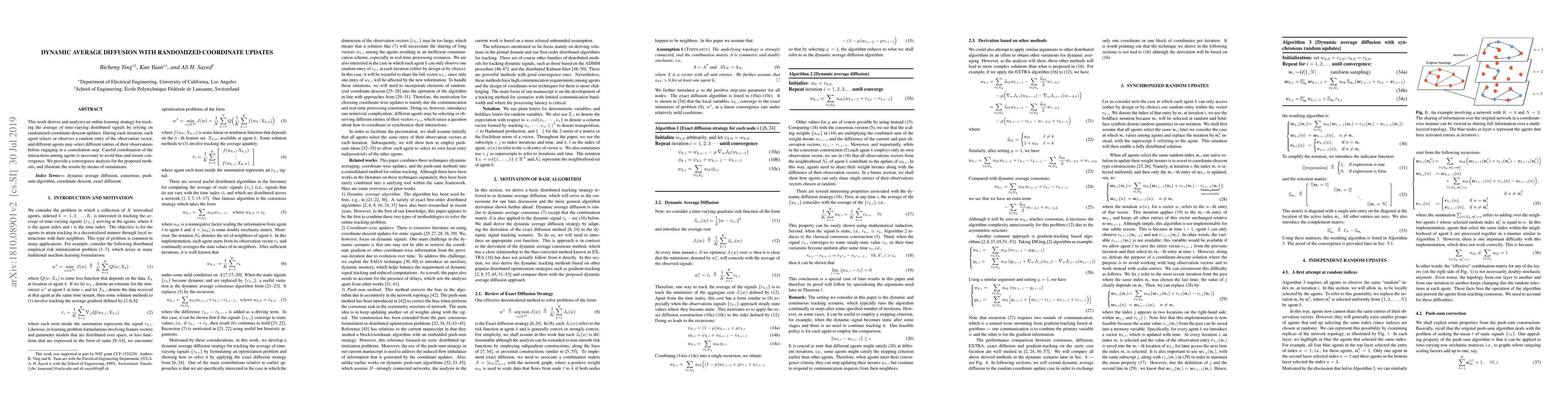 This paper proposes an online learning strategy using randomized coordinate updates to track the average of time-varying distributed signals. The method involves agents selecting random entries of their observation vectors, coordinating interactions to avoid bias, and ensuring convergence through a detailed analysis and simulations.