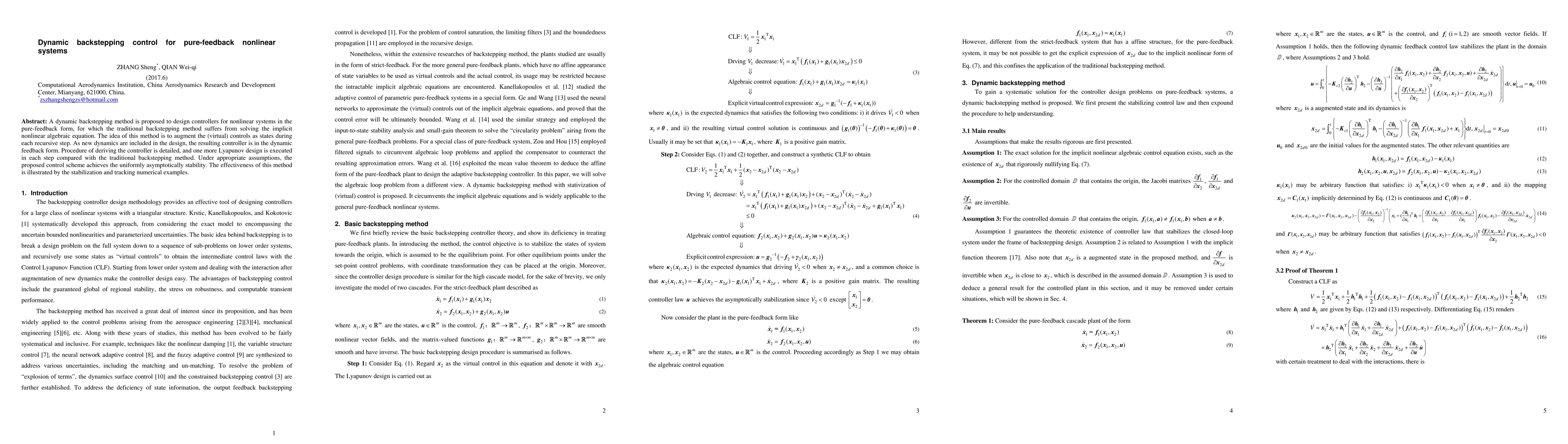 This paper proposes a dynamic backstepping method for controlling pure-feedback nonlinear systems, addressing the limitations of traditional backstepping by augmenting virtual controls as states. The resulting controller is dynamically stable and demonstrated through stabilization and tracking examples.
