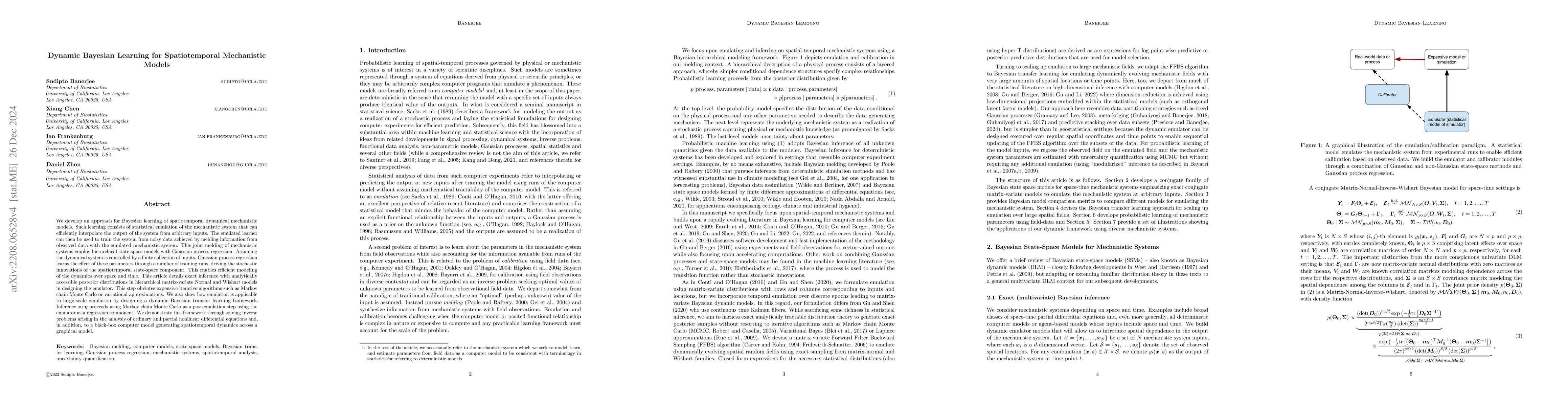 This paper proposes a fully Bayesian approach for learning and calibrating spatiotemporal dynamical mechanistic models, utilizing Gaussian and non-Gaussian state-space methods and Gaussian process regression to handle noisy observations and model misspecifications. The method is demonstrated through inverse problems in differential equations and black-box computer models.