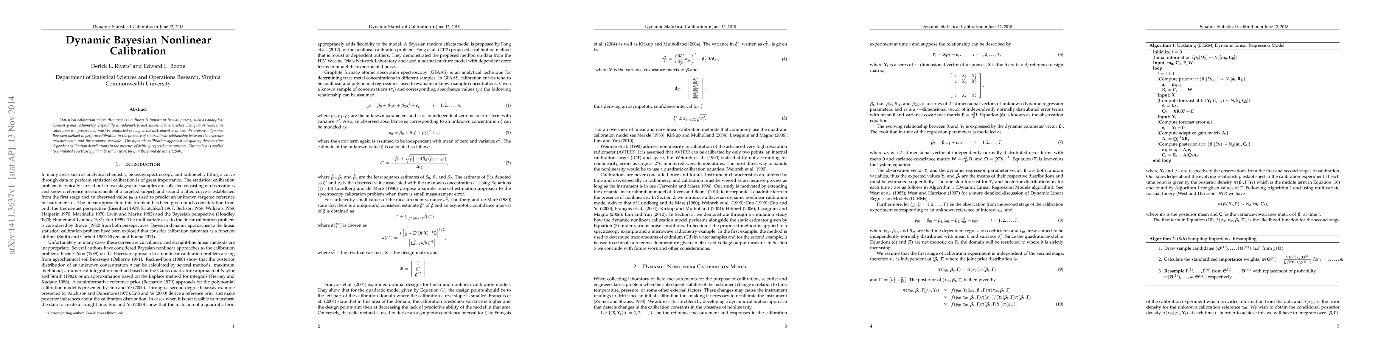 A dynamic Bayesian method is proposed for nonlinear calibration in radiometry, allowing for time-dependent calibration distributions with drifting regression parameters. This approach improves the accuracy of statistical calibration in instruments that change over time.