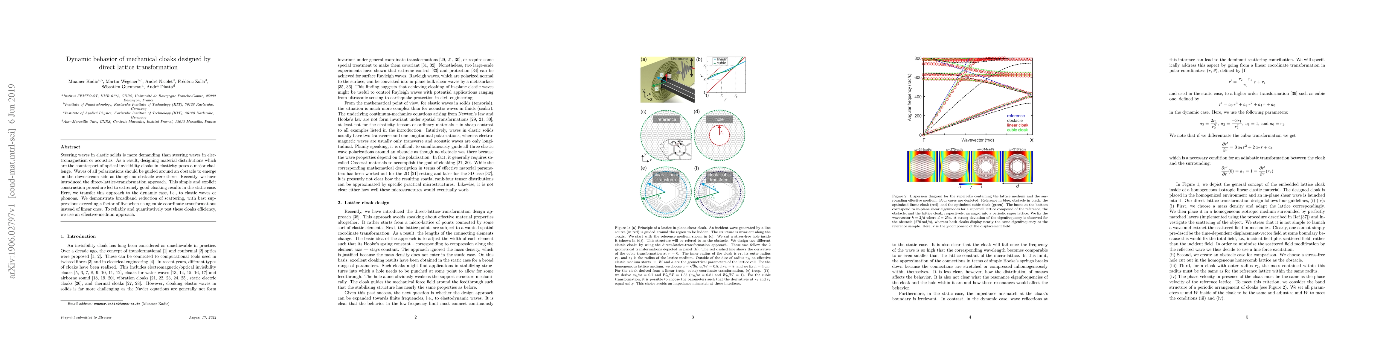 Steering waves in elastic solids is more demanding than steering waves in electromagnetism or acoustics. As a result, designing material distributions which are the counterpart of optical invisibility cloaks in elasticity poses a major challenge. Waves of all polarizations should be guided around an obstacle to emerge on the downstream side as though no obstacle were there. Recently, we have introduced the direct-lattice-transformation approach. This simple and explicit construction procedure led to extremely good cloaking results in the static case. Here, we transfer this approach to the dynamic case, i.e., to elastic waves or phonons. We demonstrate broadband reduction of scattering, with best suppressions exceeding a factor of five when using cubic coordinate transformations instead of linear ones. To reliably and quantitatively test these cloaks efficiency, we use an effective-medium approach.
