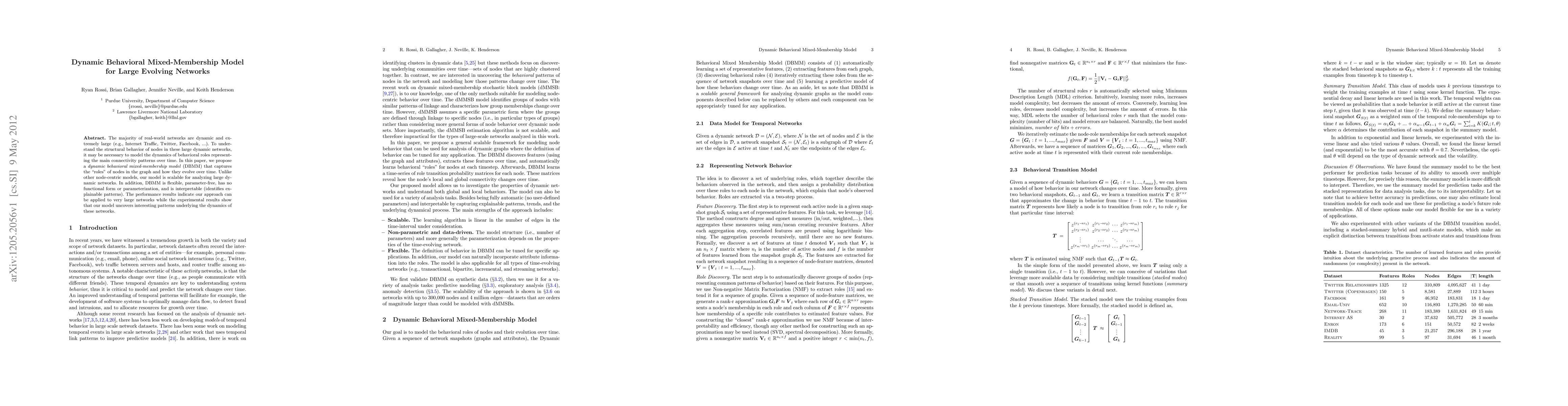 Researchers propose a dynamic behavioral mixed-membership model to analyze large evolving networks, revealing interesting patterns in node connectivity over time. The approach is scalable, flexible, and interpretable, making it suitable for understanding complex network dynamics.