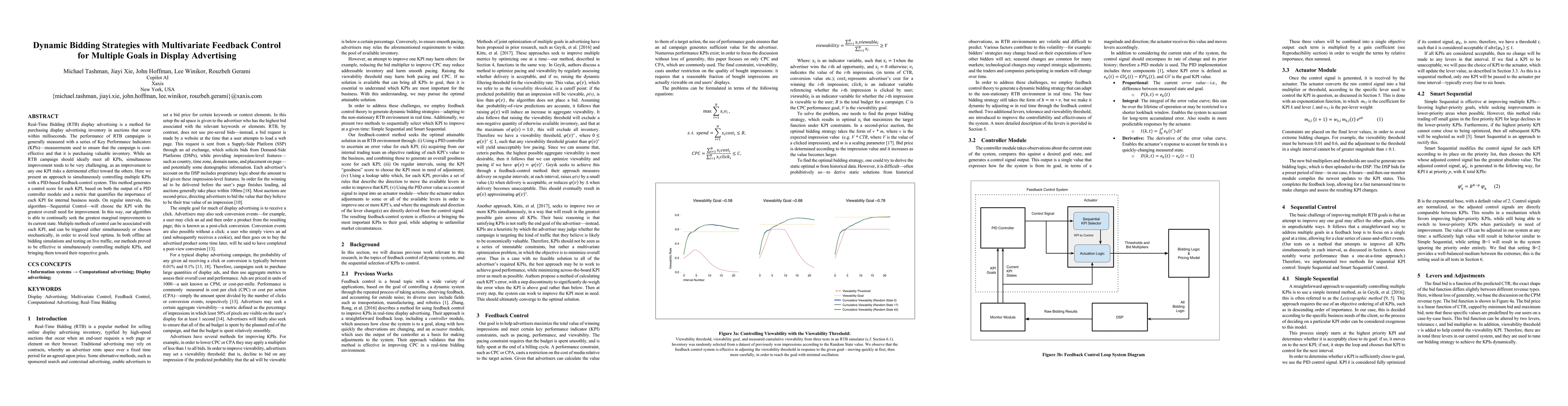 This paper proposes a dynamic bidding strategy using multivariate feedback control to optimize multiple Key Performance Indicators (KPIs) in Real-Time Bidding (RTB) display advertising. The Sequential Control algorithm employs a PID-based feedback system to prioritize KPIs based on their importance and current state, effectively navigating trade-offs between competing goals.
