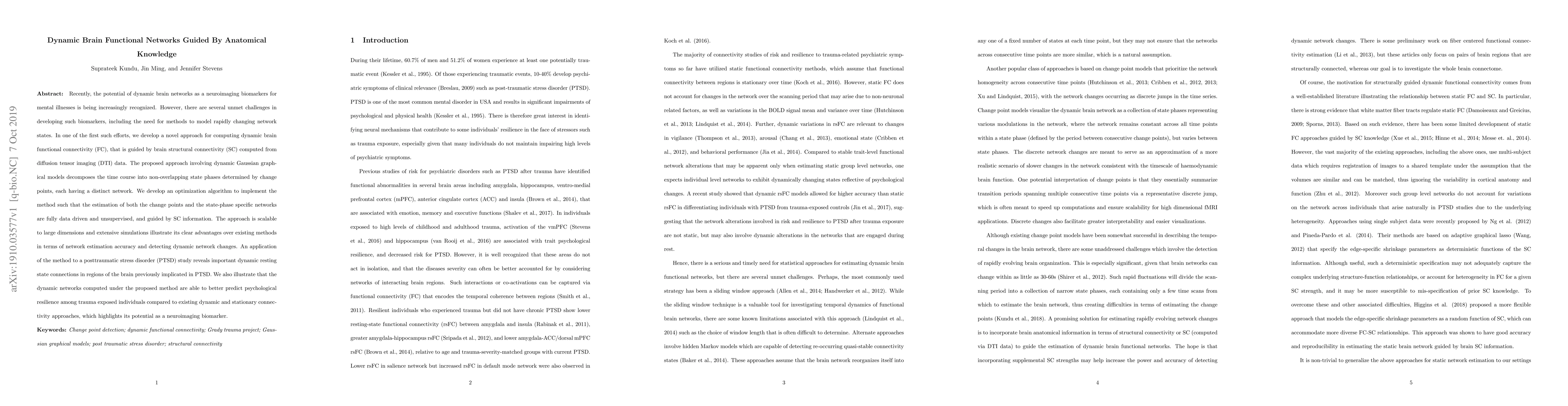 This research introduces a novel method to compute dynamic brain functional connectivity, guided by structural connectivity data, using change points to identify distinct network states. The approach outperforms existing methods in accuracy and change detection, and demonstrates potential as a neuroimaging biomarker for psychological resilience in PTSD studies.