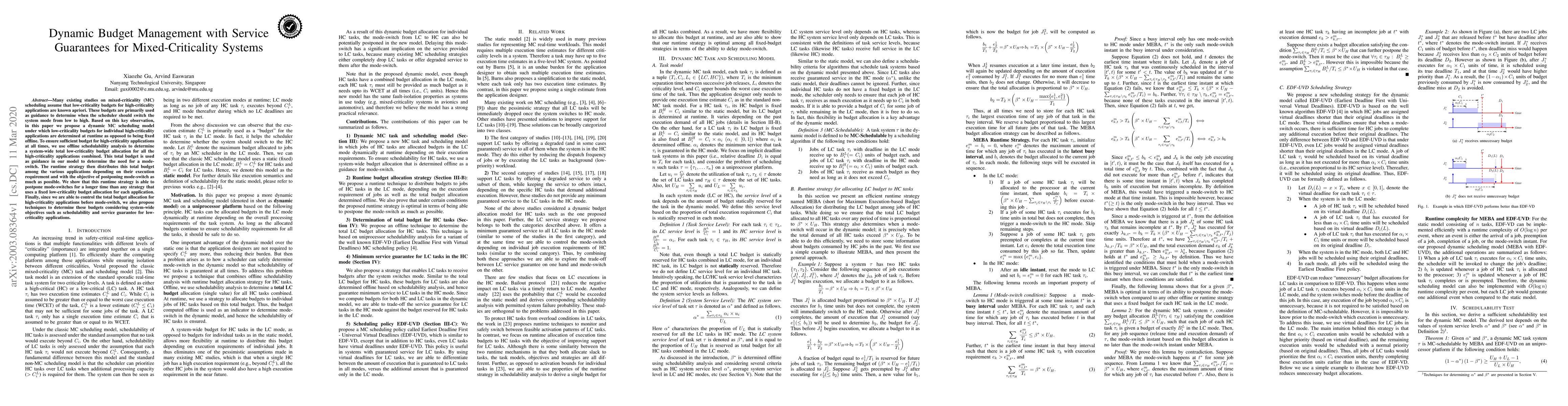 This paper proposes a dynamic scheduling model for mixed-criticality systems where low-criticality budgets for high-criticality applications are determined at runtime instead of being fixed. The model aims to postpone mode-switches longer and ensures sufficient budget for high-criticality applications while considering system-wide objectives like schedulability and service guarantees for low-criticality applications.