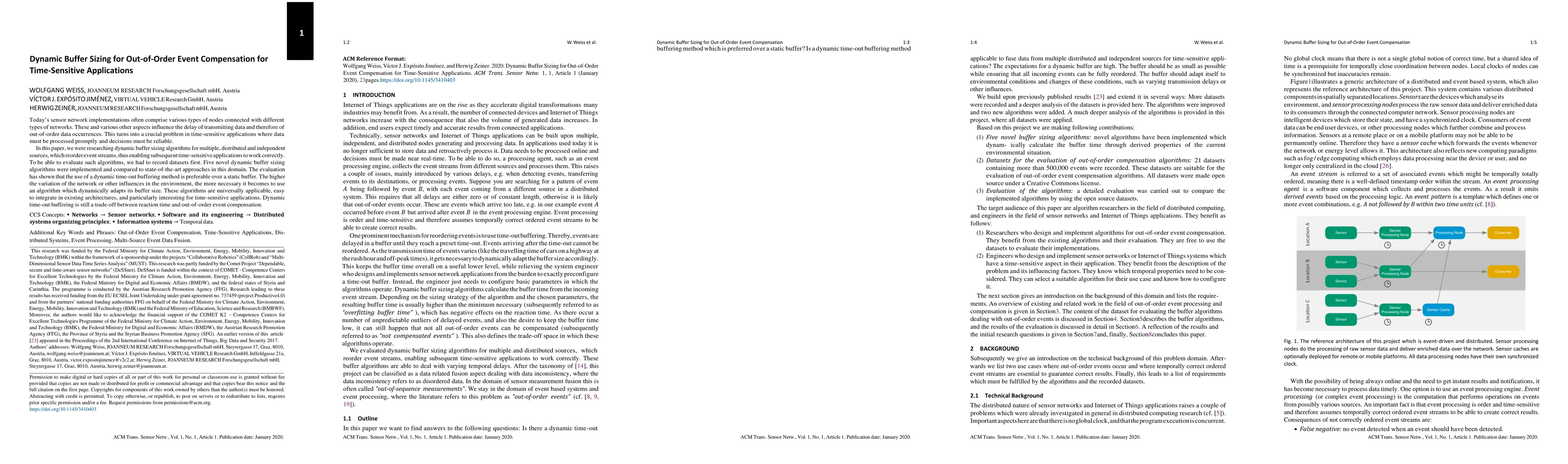 This paper investigates dynamic buffer sizing algorithms to compensate for out-of-order events in time-sensitive applications, implementing and comparing five novel algorithms against state-of-the-art methods. The results favor dynamic time-out buffering over static buffers, especially in environments with high network variability.