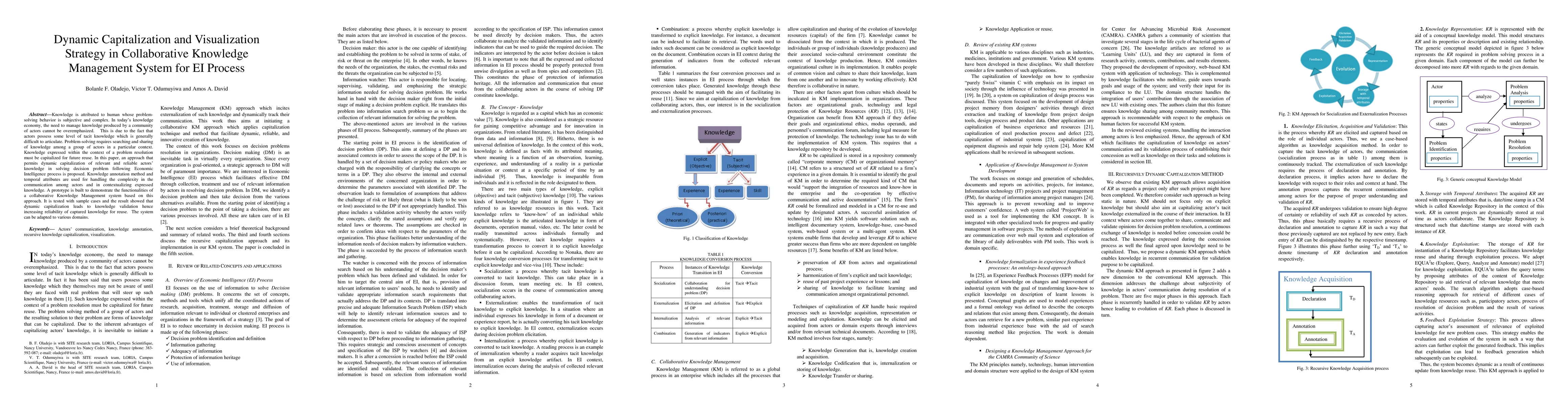 Knowledge is attributed to human whose problem-solving behavior is subjective and complex. In today's knowledge economy, the need to manage knowledge produced by a community of actors cannot be overemphasized. This is due to the fact that actors possess some level of tacit knowledge which is generally difficult to articulate. Problem-solving requires searching and sharing of knowledge among a group of actors in a particular context. Knowledge expressed within the context of a problem resolution must be capitalized for future reuse. In this paper, an approach that permits dynamic capitalization of relevant and reliable actors' knowledge in solving decision problem following Economic Intelligence process is proposed. Knowledge annotation method and temporal attributes are used for handling the complexity in the communication among actors and in contextualizing expressed knowledge. A prototype is built to demonstrate the functionalities of a collaborative Knowledge Management system based on this approach. It is tested with sample cases and the result showed that dynamic capitalization leads to knowledge validation hence increasing reliability of captured knowledge for reuse. The system can be adapted to various domains