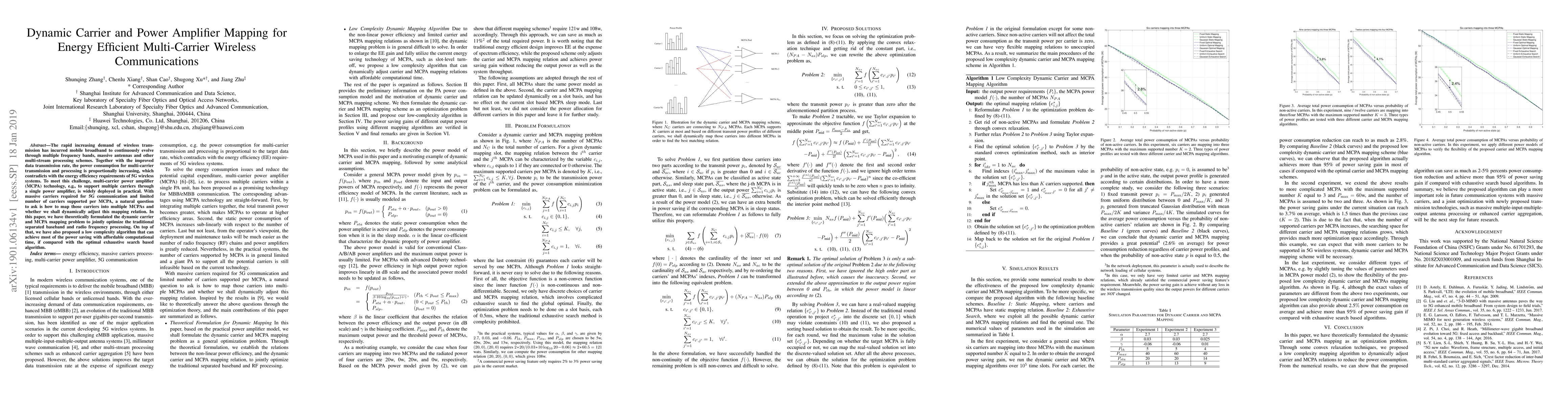 The rapid increasing demand of wireless transmission has incurred mobile broadband to continuously evolve through multiple frequency bands, massive antennas and other multi-stream processing schemes. Together with the improved data transmission rate, the power consumption for multi-carrier transmission and processing is proportionally increasing, which contradicts with the energy efficiency requirements of 5G wireless systems. To meet this challenge, multi carrier power amplifier (MCPA) technology, e.g., to support multiple carriers through a single power amplifier, is widely deployed in practical. With massive carriers required for 5G communication and limited number of carriers supported per MCPA, a natural question to ask is how to map those carriers into multiple MCPAs and whether we shall dynamically adjust this mapping relation. In this paper, we have theoretically formulated the dynamic carrier and MCPA mapping problem to jointly optimize the traditional separated baseband and radio frequency processing. On top of that, we have also proposed a low complexity algorithm that can achieve most of the power saving with affordable computational time, if compared with the optimal exhaustive search based algorithm.