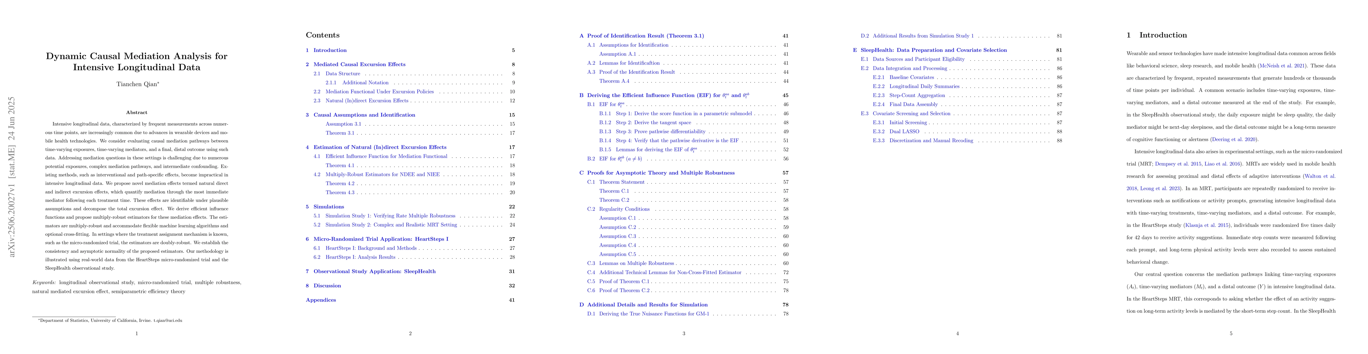 Intensive longitudinal data, characterized by frequent measurements across numerous time points, are increasingly common due to advances in wearable devices and mobile health technologies. We consider evaluating causal mediation pathways between time-varying exposures, time-varying mediators, and a final, distal outcome using such data. Addressing mediation questions in these settings is challenging due to numerous potential exposures, complex mediation pathways, and intermediate confounding. Existing methods, such as interventional and path-specific effects, become impractical in intensive longitudinal data. We propose novel mediation effects termed natural direct and indirect excursion effects, which quantify mediation through the most immediate mediator following each treatment time. These effects are identifiable under plausible assumptions and decompose the total excursion effect. We derive efficient influence functions and propose multiply-robust estimators for these mediation effects. The estimators are multiply-robust and accommodate flexible machine learning algorithms and optional cross-fitting. In settings where the treatment assignment mechanism is known, such as the micro-randomized trial, the estimators are doubly-robust. We establish the consistency and asymptotic normality of the proposed estimators. Our methodology is illustrated using real-world data from the HeartSteps micro-randomized trial and the SleepHealth observational study.